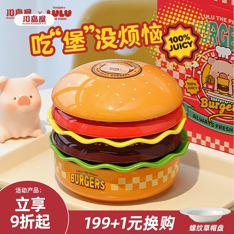 川岛屋&lulu猪联名 汉堡包餐具套装餐盘碟子碗碟乔迁生日礼物女生