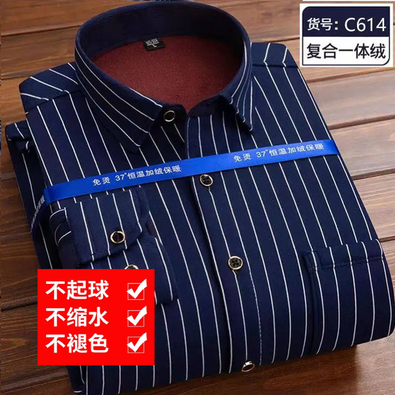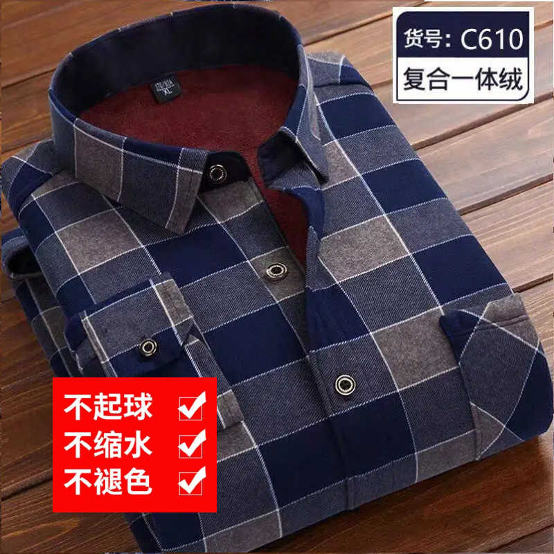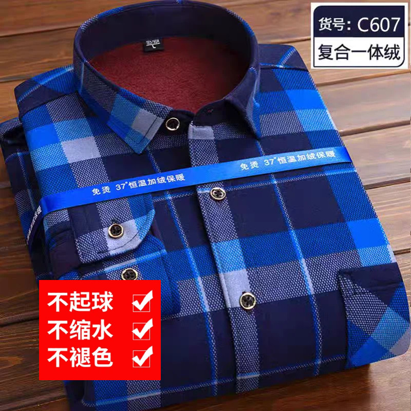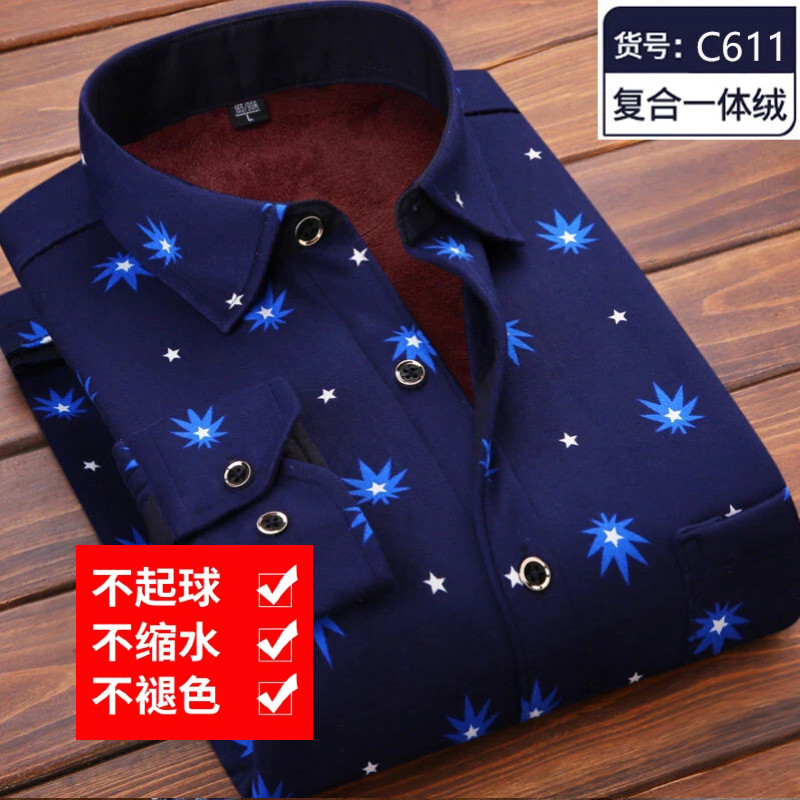 2026新款男士加绒衬衫长袖保暖衬衣中老年爸爸休闲印花秋冬一体绒