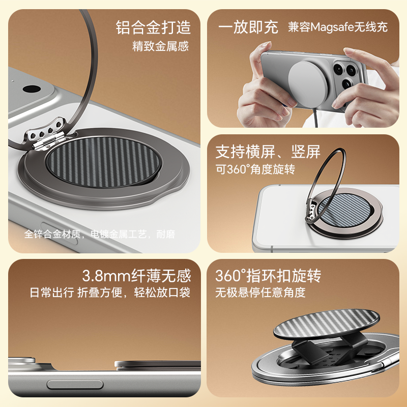 新款手机支架magsafe双面磁吸指环扣强力车载多功能支撑旋转桌面