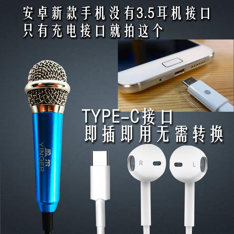 盈尔K10迷你Typec扁孔手机全民K唱歌录音专用电脑降噪麦克风话筒
