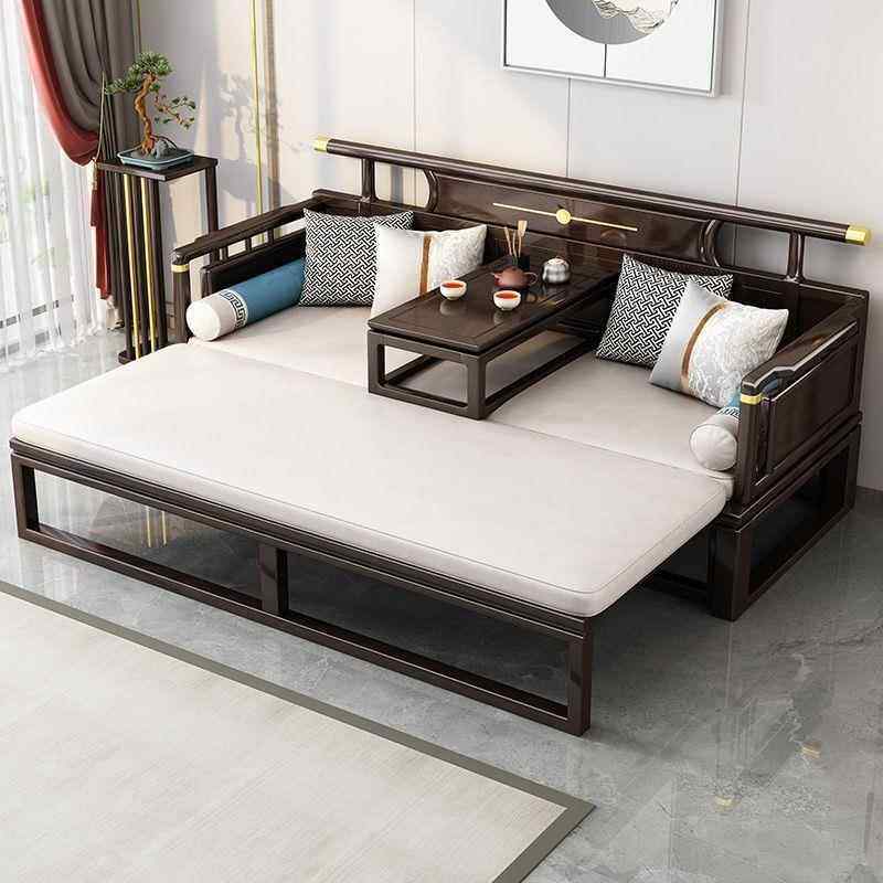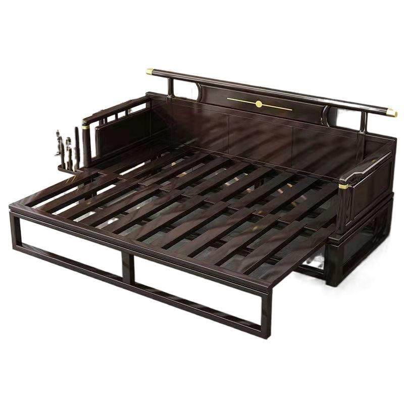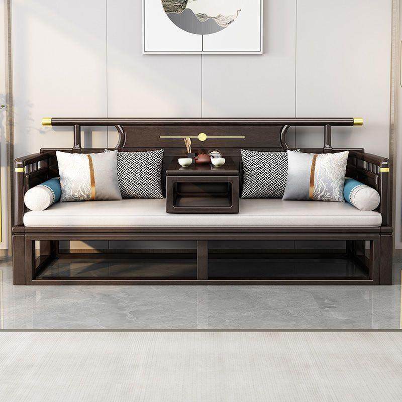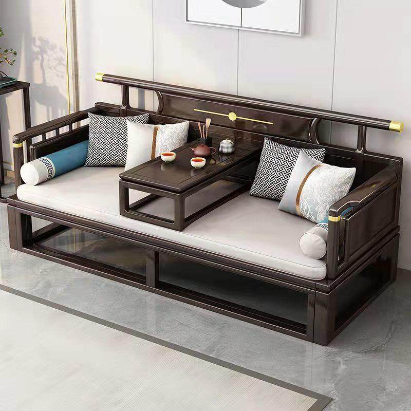 t%新中式实木罗汉床罗汉榻大小户型可推拉伸缩坐卧两用橡胶木沙发