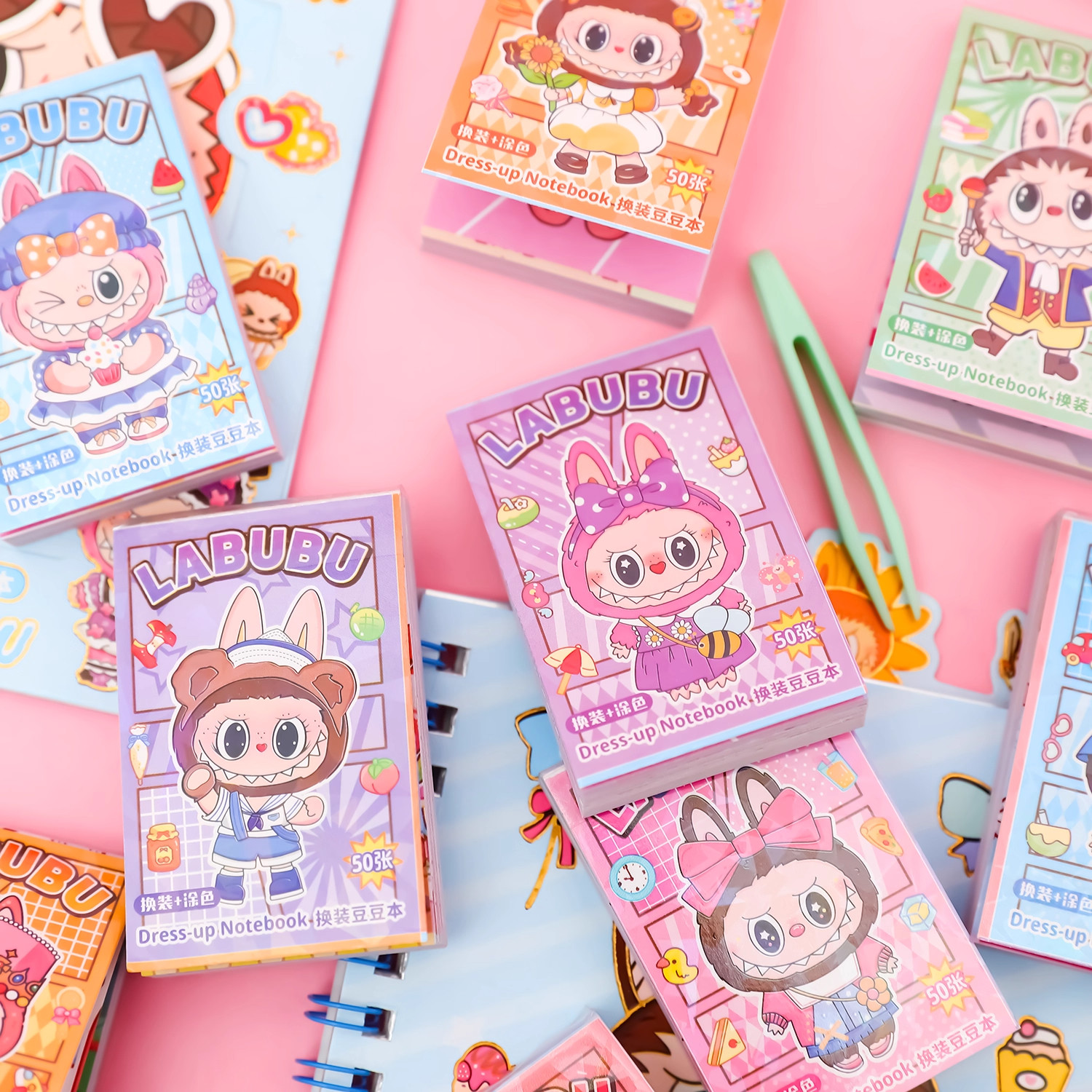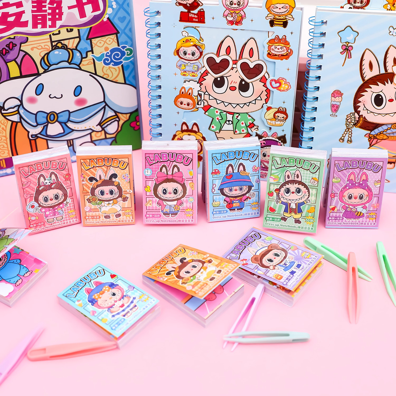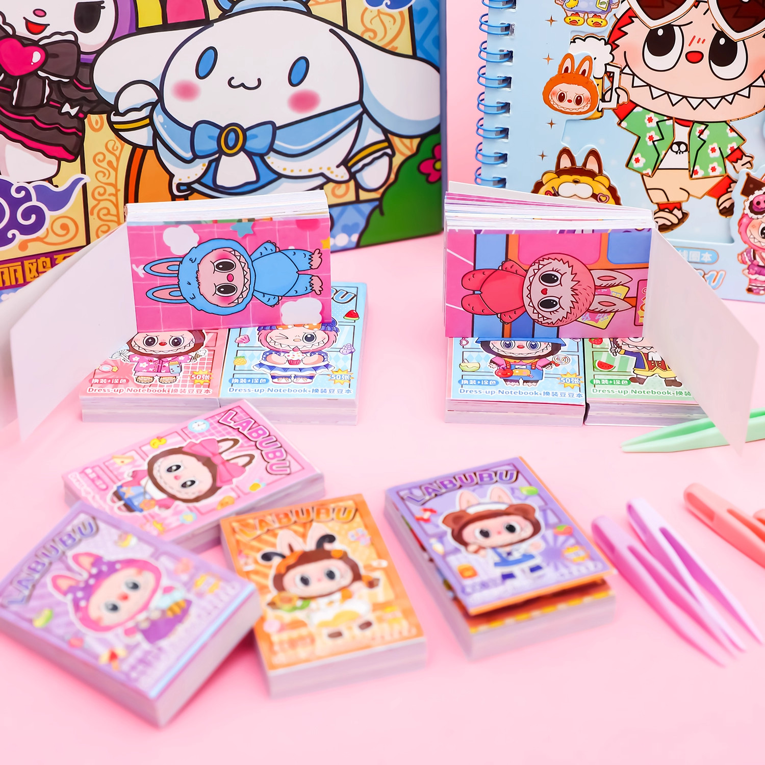 爆款拉布布换装贴纸本迷你豆豆本卡通可爱填色涂色diy安静书玩具