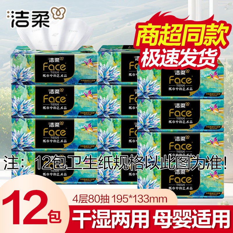 洁柔纸巾油画抽纸面巾纸擦手纸加厚艺术整箱实惠装餐巾纸家用原生
