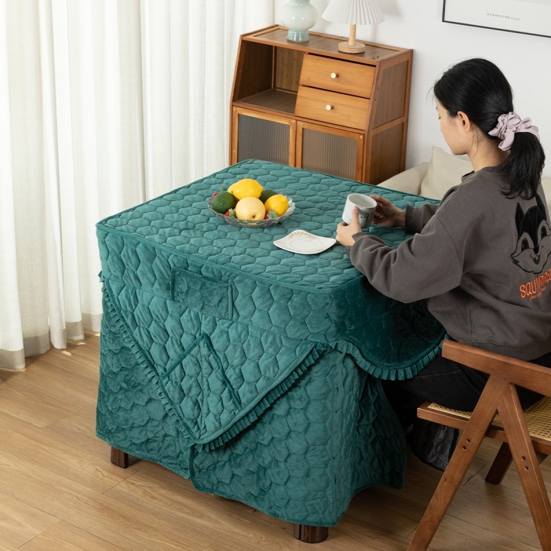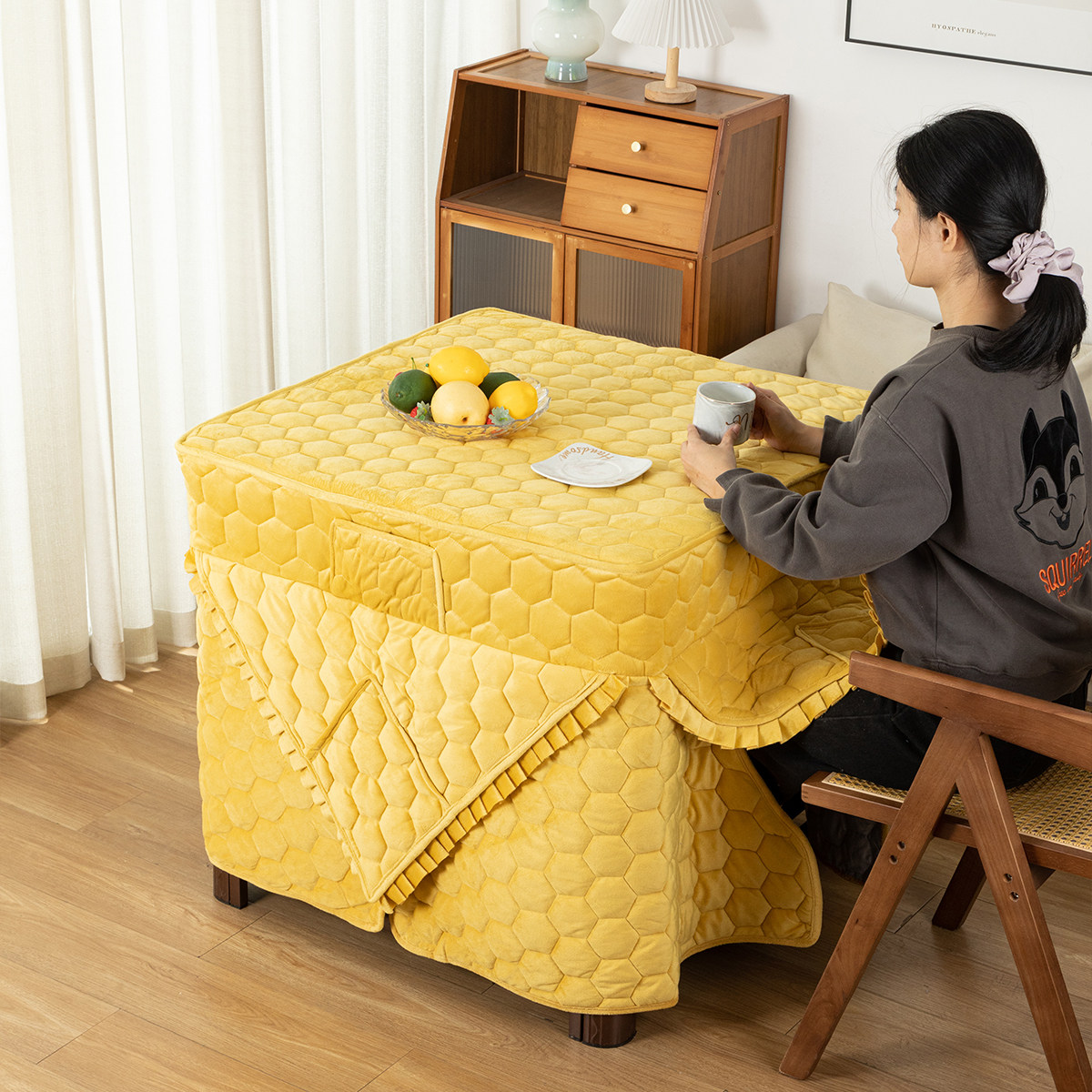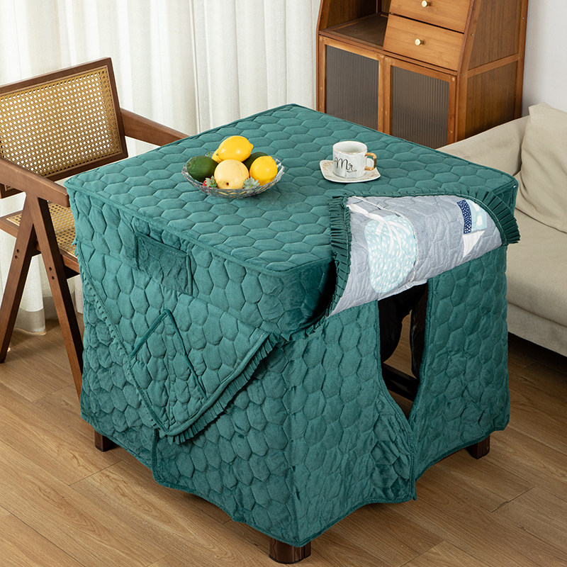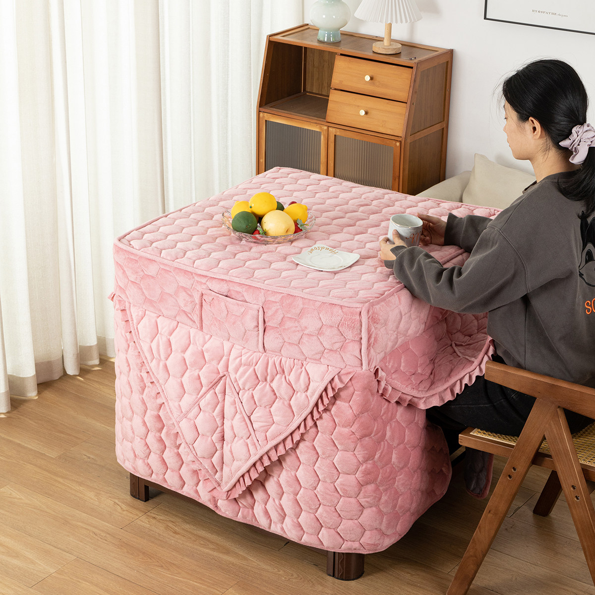 加厚绒面烤火罩正方形烤火桌罩套茶几取暖罩保暖罩大包围布罩冬季