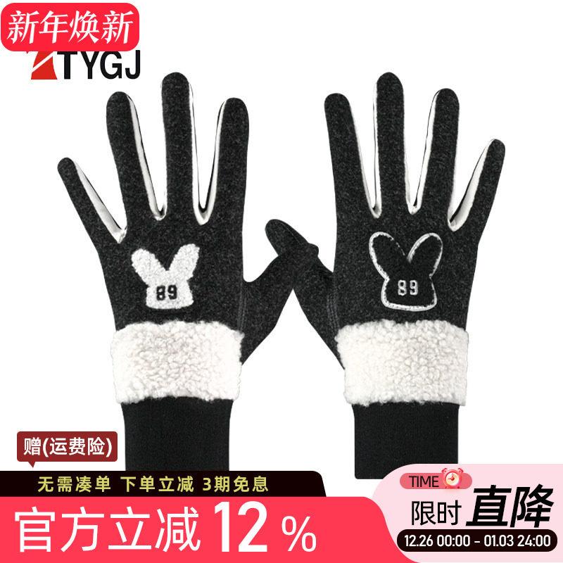 高尔夫手套女士冬季保暖加绒手套户外运动防风骑行手套可触屏双手
