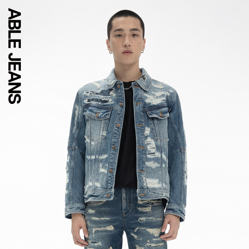 ABLE JEANS【黄子弘凡同款】男士西部牛仔风暴水洗重工夹克外套