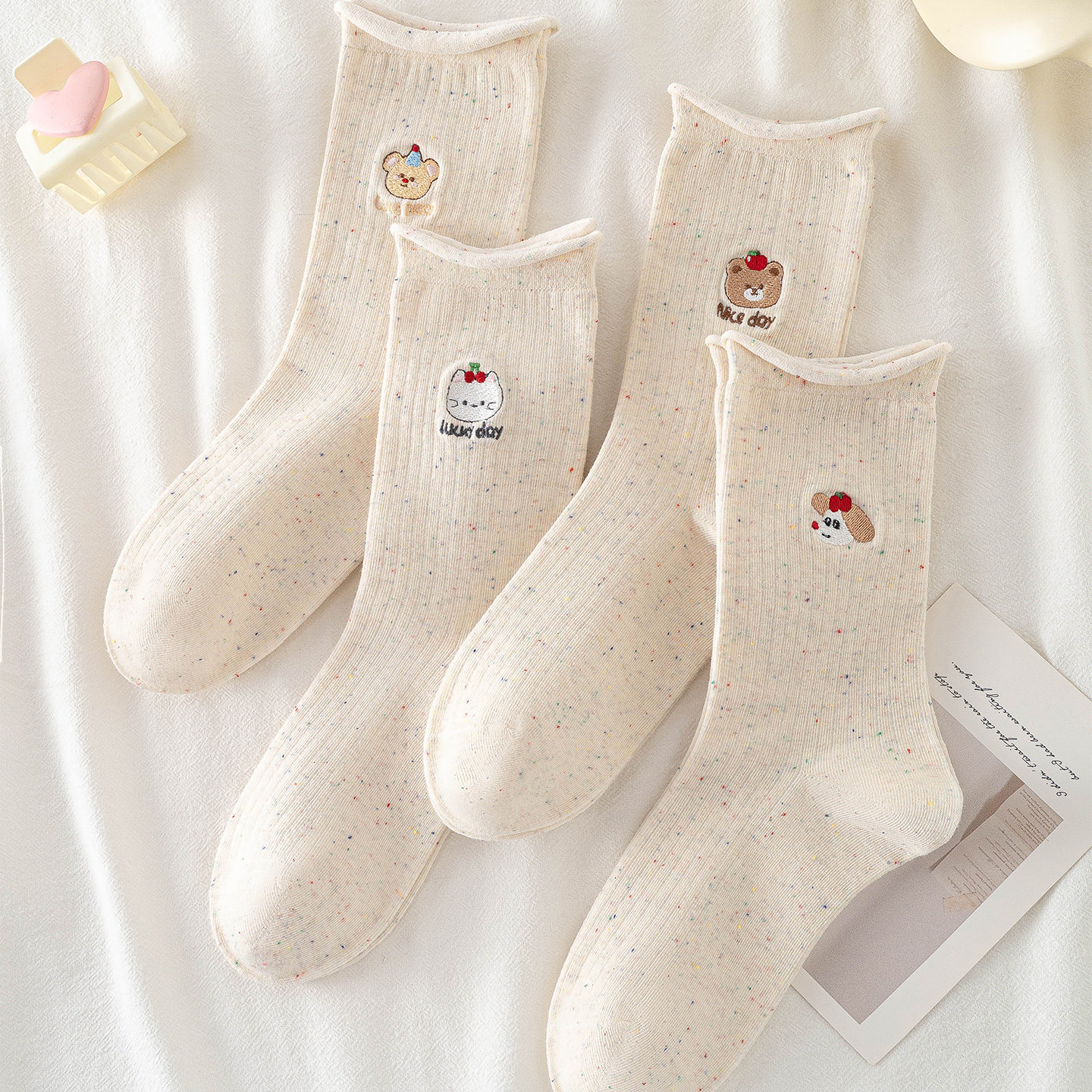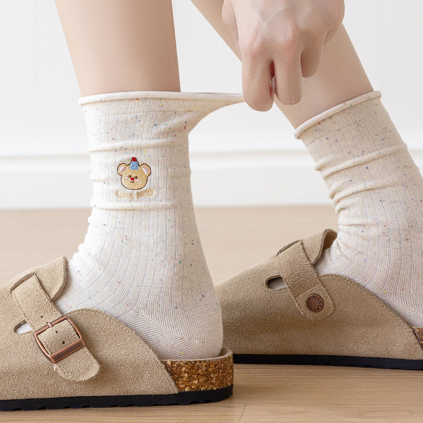 卡拉美拉2025秋冬新款袜子刺绣基础点子纱棉袜韩系百搭简约中筒袜
