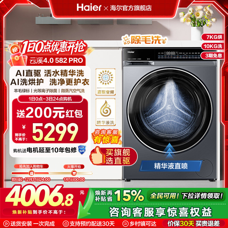 [云溪4.0]海尔滚筒洗衣机家用全自动大容量洗烘一体582