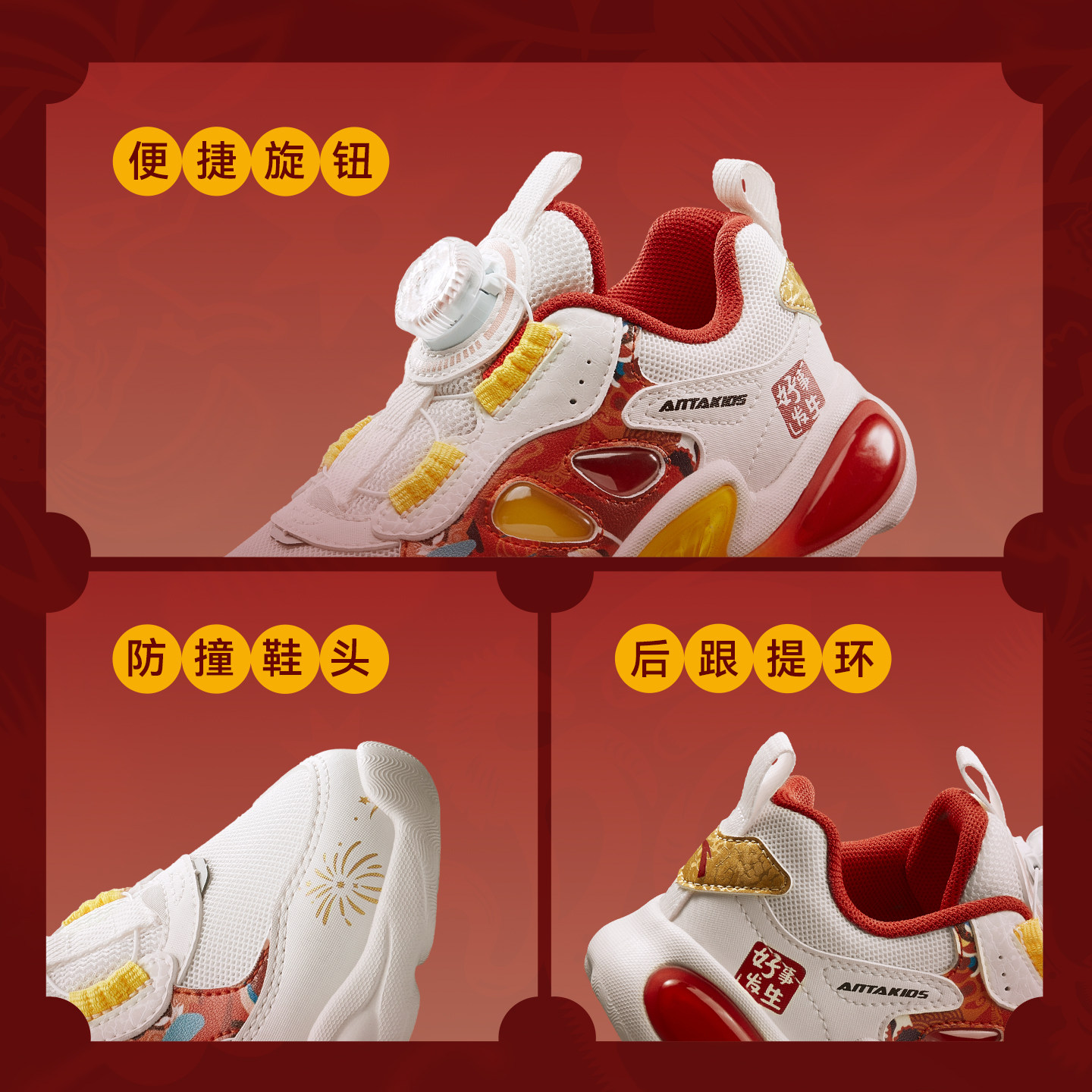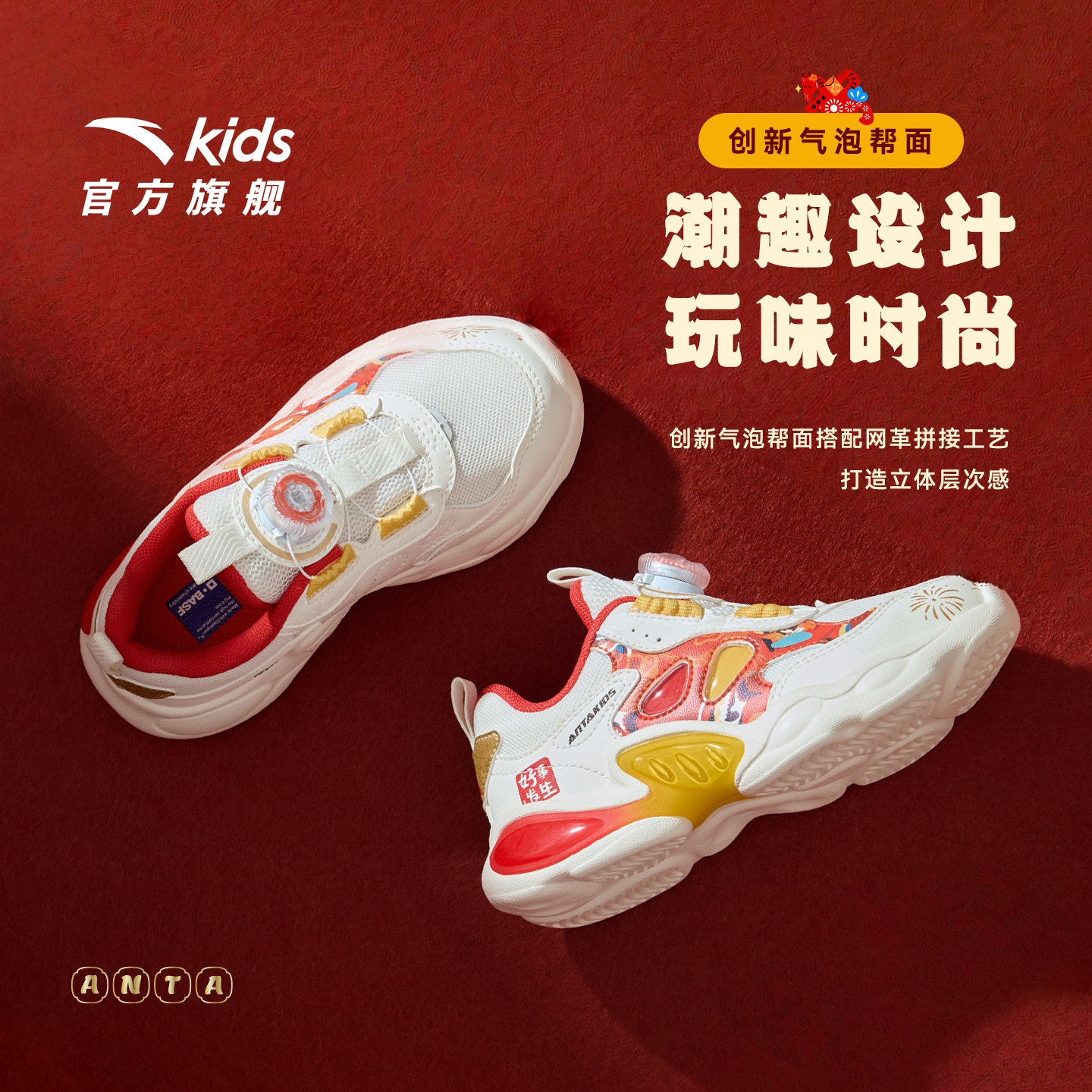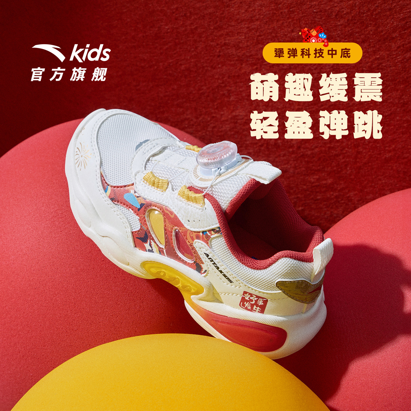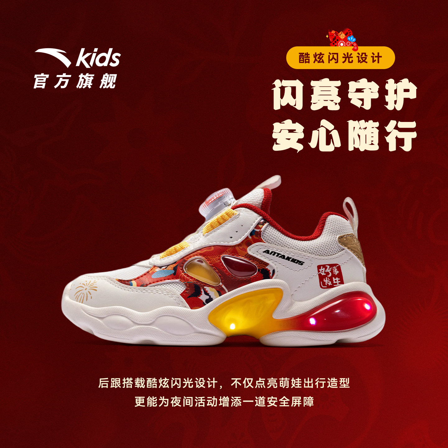 安踏童鞋宝宝新年灯鞋2026新款红色跑鞋发光鞋过年运动鞋男女小童