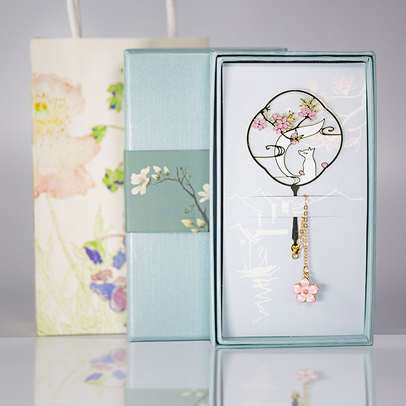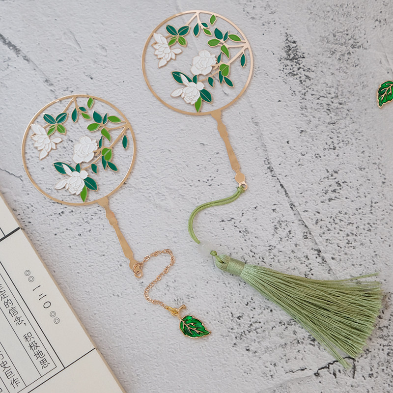 茉莉花团扇书签中国风古典文化创意礼品黄铜金属定制