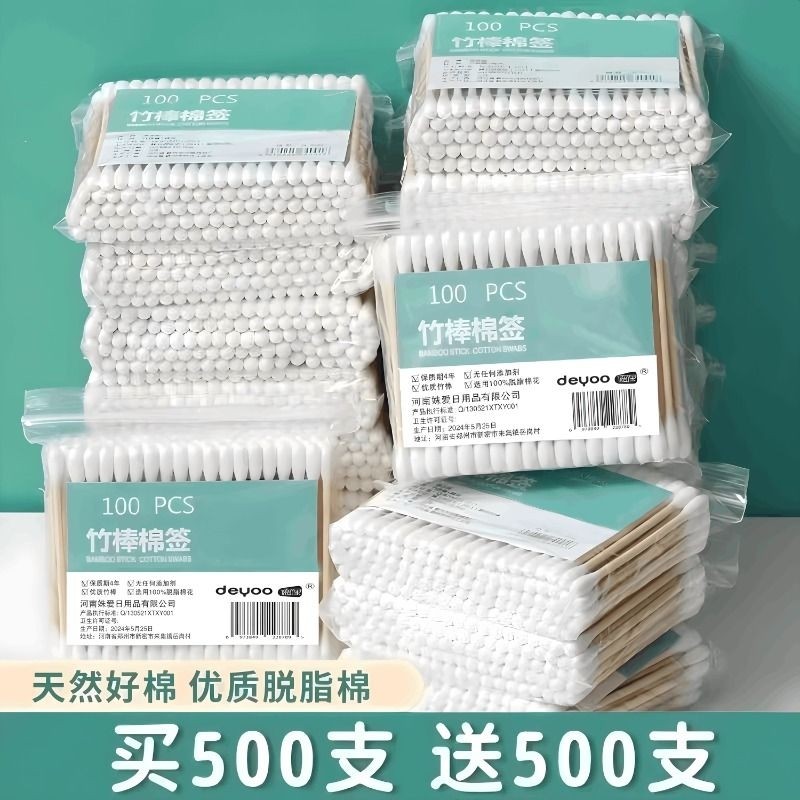 双头棉签棉棒化妆用掏耳朵家用一次性尖头竹棒棉球清洁棉花袋装