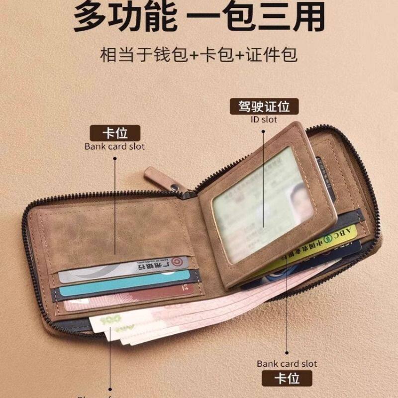 2025新款长款双拉链钱包男士护照皮夹软皮大容量真皮质感手包商务