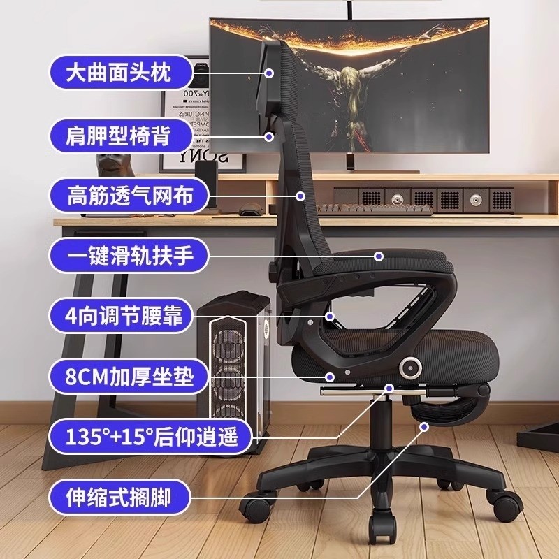 人体工学椅护腰电脑椅家用舒适久坐办公室男宿舍电竞椅子升降伸缩