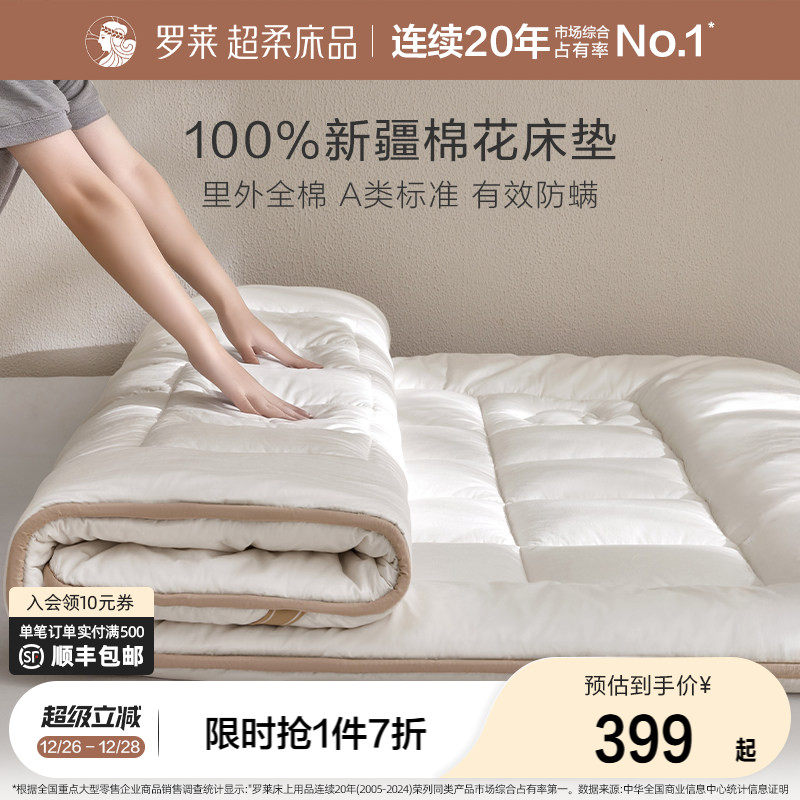 罗莱家纺新疆棉花全棉床垫软垫学生宿舍单人家用榻榻米床褥垫租房
