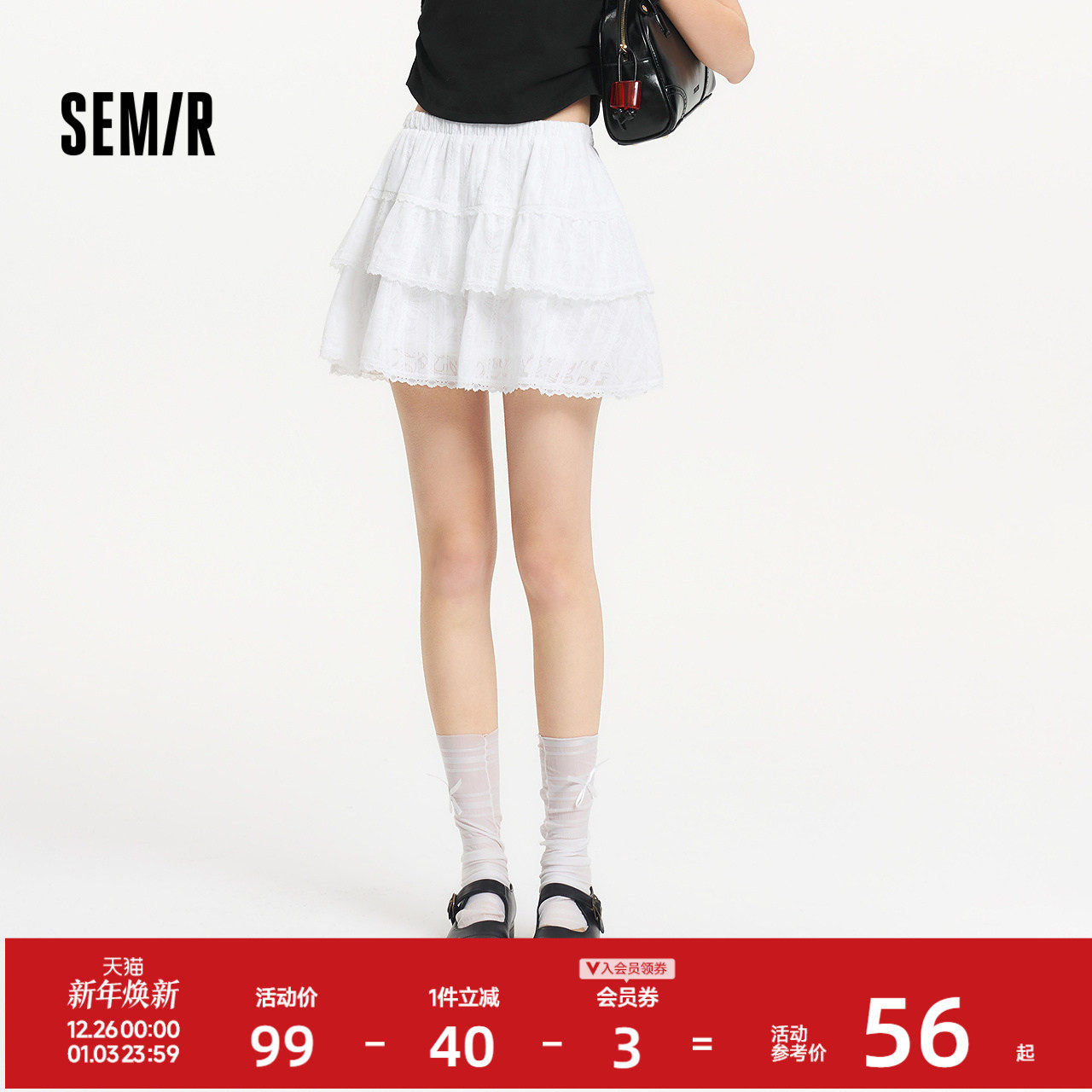 森马半身裙女设计感肌理蕾丝花边甜美2025夏新款A字蓬蓬短裙俏皮