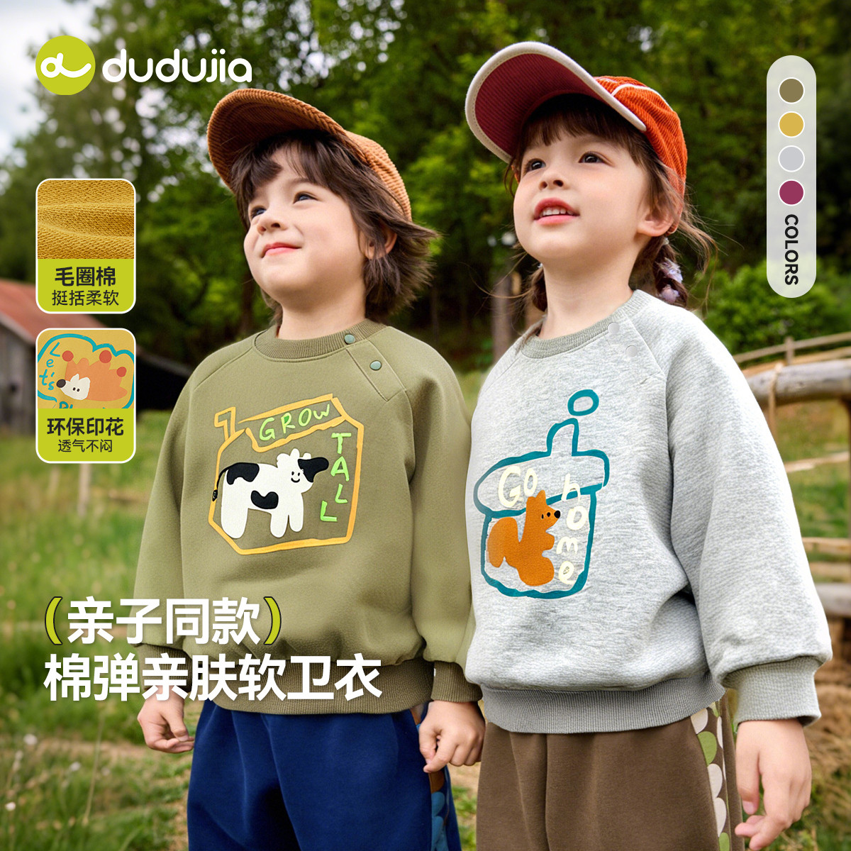 嘟嘟家男童卫衣红色宝宝儿童冬装女童上衣加绒加厚秋冬亲子装新款