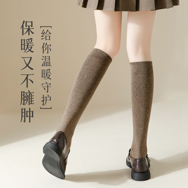 过膝袜子女秋冬羊毛长筒袜加厚保暖护膝大腿袜纯棉压力显瘦高筒袜