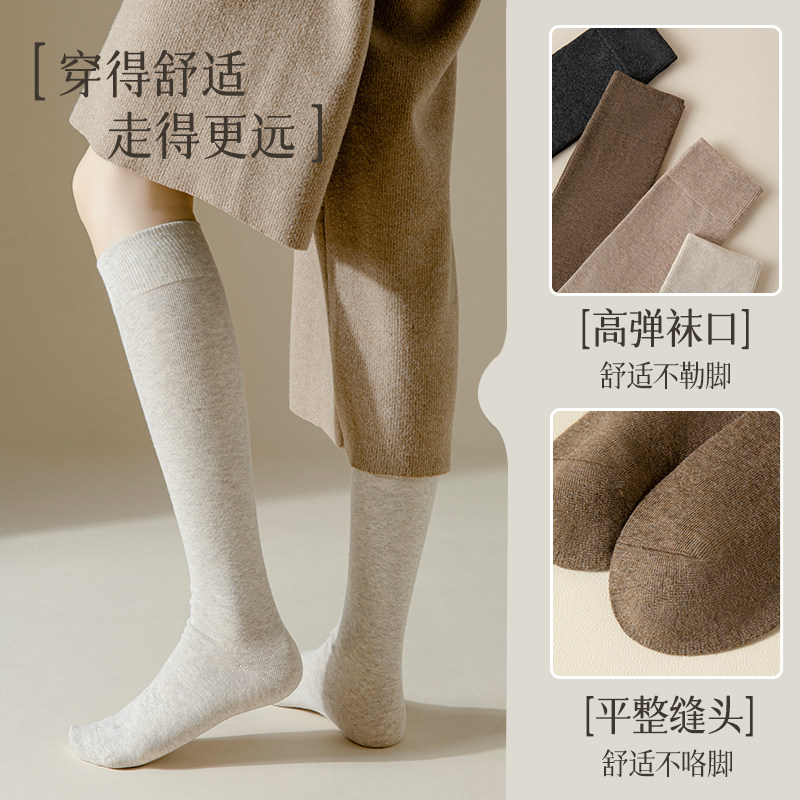袜子女长筒袜秋冬爆款10A抗菌防臭纯色棉袜吸汗无骨保暖女中筒袜