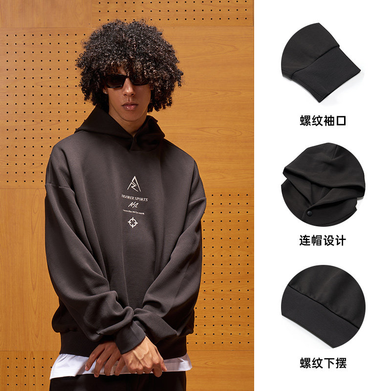 里夫斯同款准者连帽卫衣男秋新款美式复古宽松运动针织套头衫