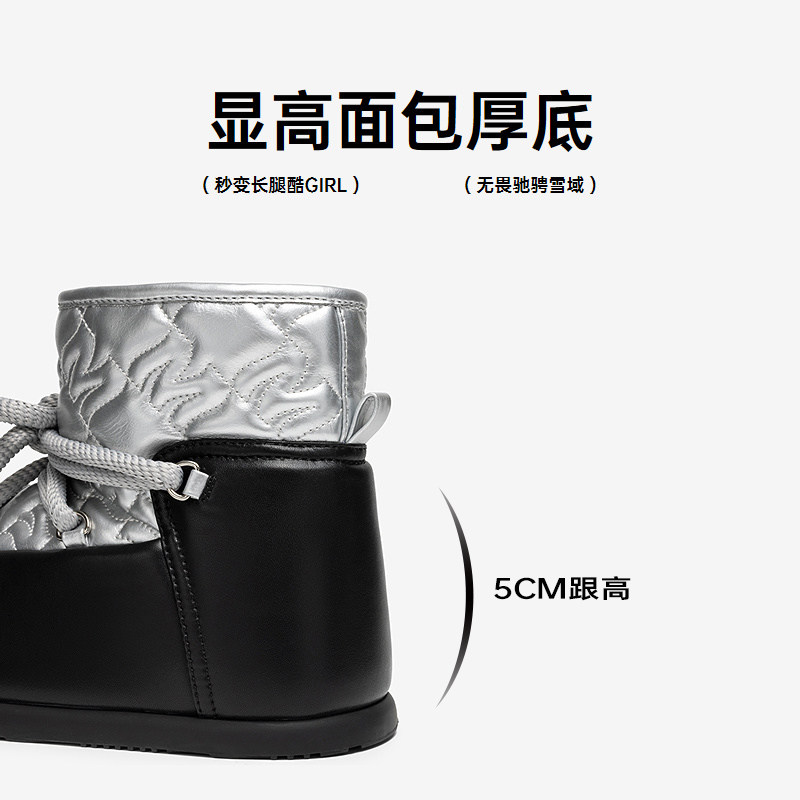 miu家厚底雪地靴女冬季真皮短靴羊毛侧拉链增高厚底加绒毛毛棉鞋
