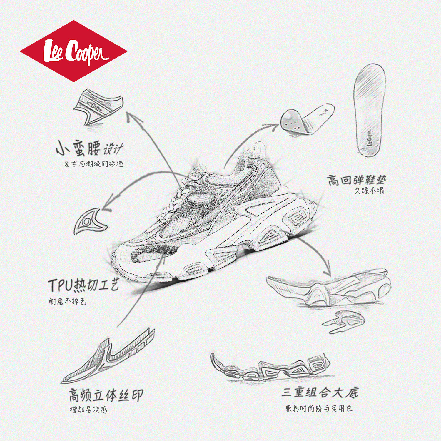 【孟子义同款】Lee Cooper老爹鞋女款2025新款秋冬潮流低帮运动鞋