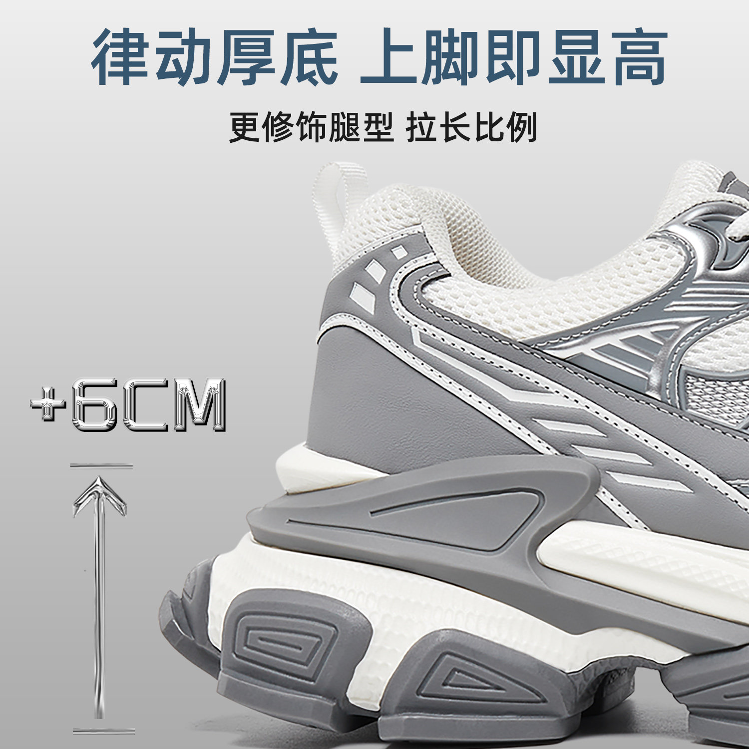 KILLWINNER 灰色运动跑鞋 休闲轻便老爹鞋 增高6cm 男女同款 KW