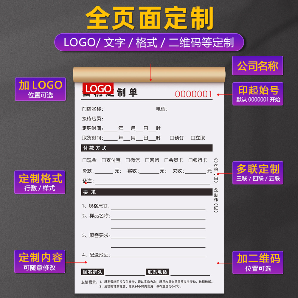 【蛋糕店专用】蛋糕店订单本二联定做生日做蛋糕用的一票通花店票本鲜花预定单预订单开单本单据收款收据三联