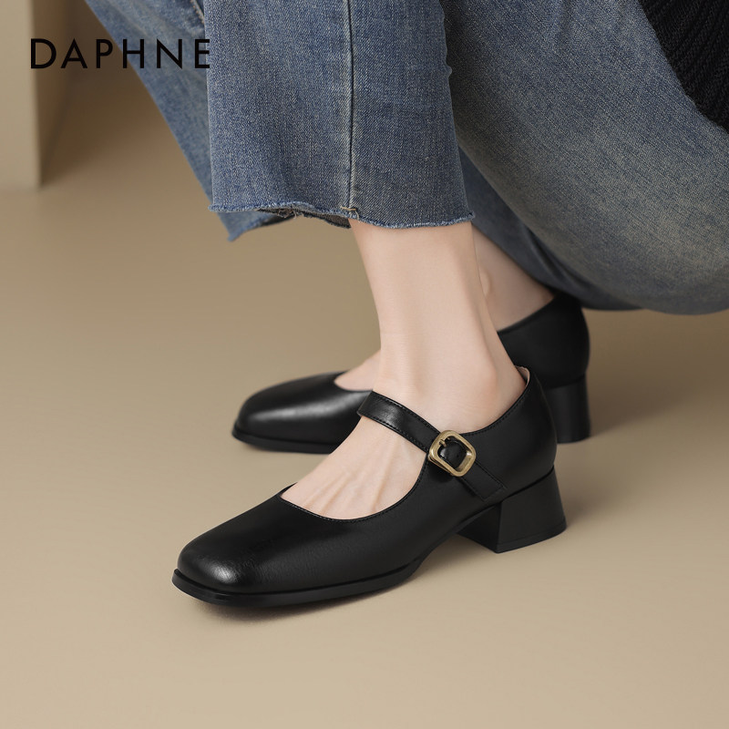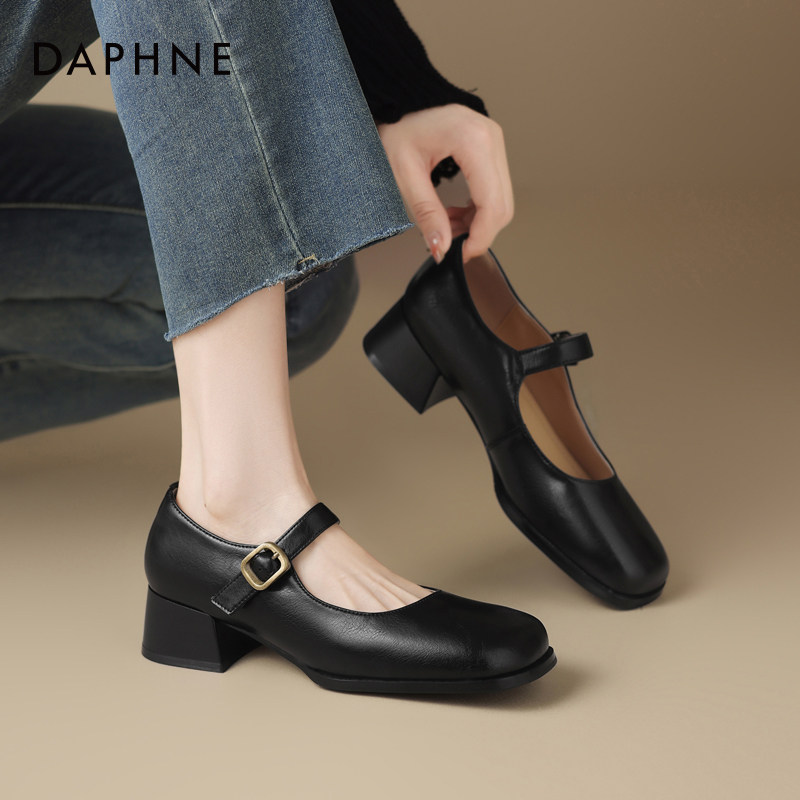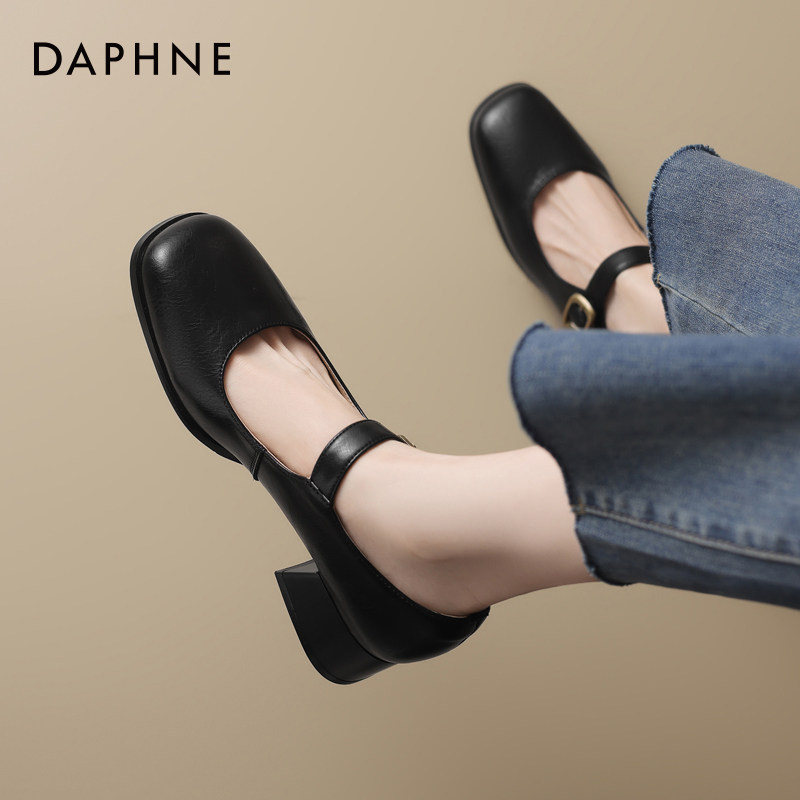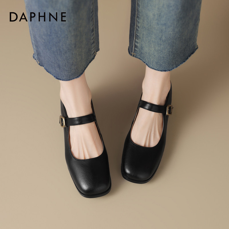 达芙妮方头单鞋女春季中跟浅口瓢鞋软皮春秋配裙子玛丽珍女鞋皮鞋