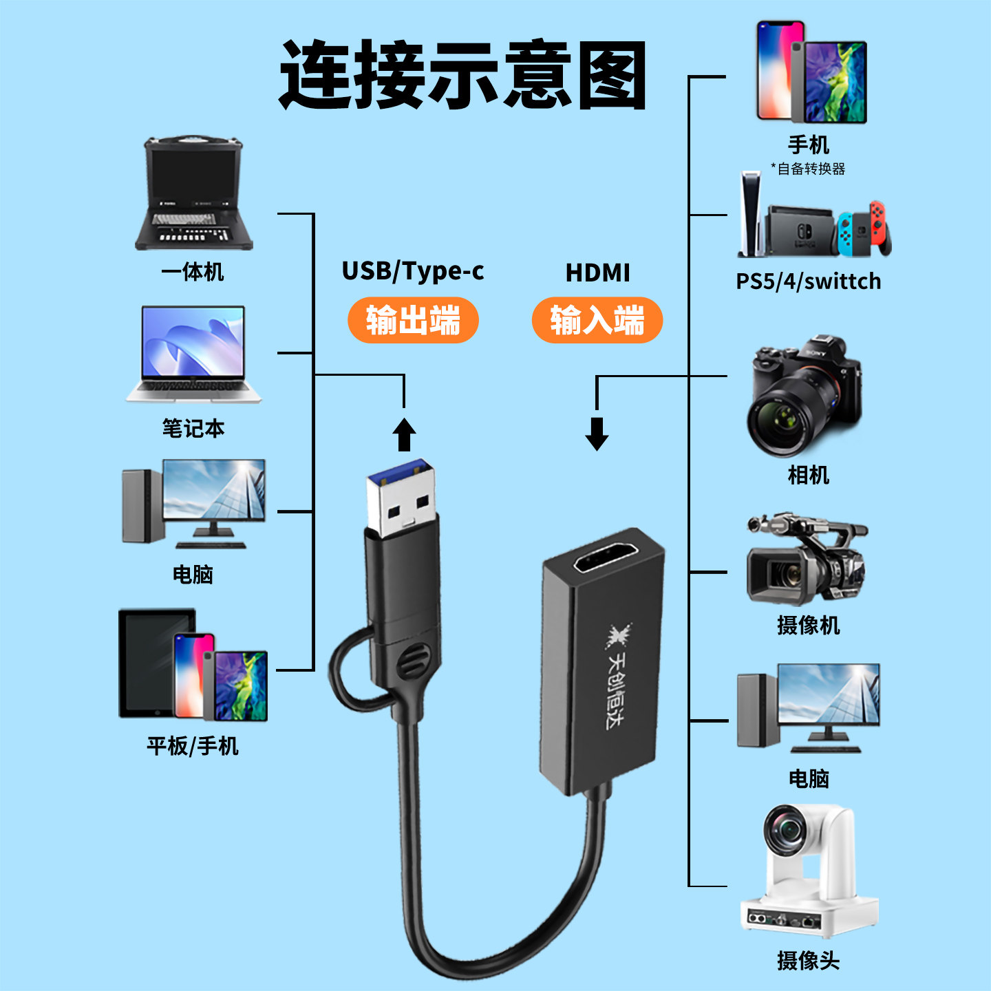天创恒达UB200 PRO 4K视频采集卡hdmi视频会议游戏直播网课采集棒