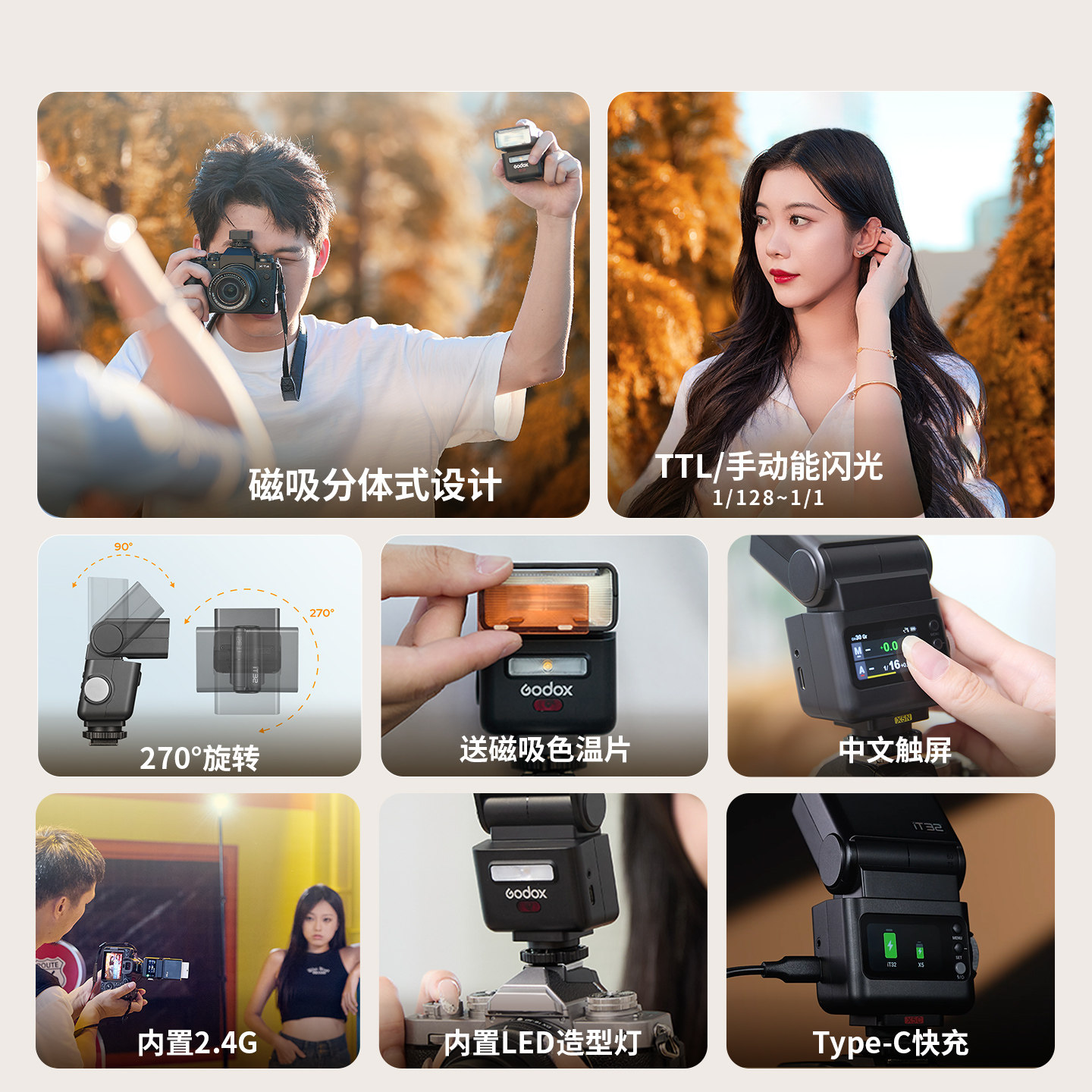 Godox神牛IT32迷你相机闪光灯ttl高速同步适用佳能索尼富士x5磁吸引闪热靴机顶灯