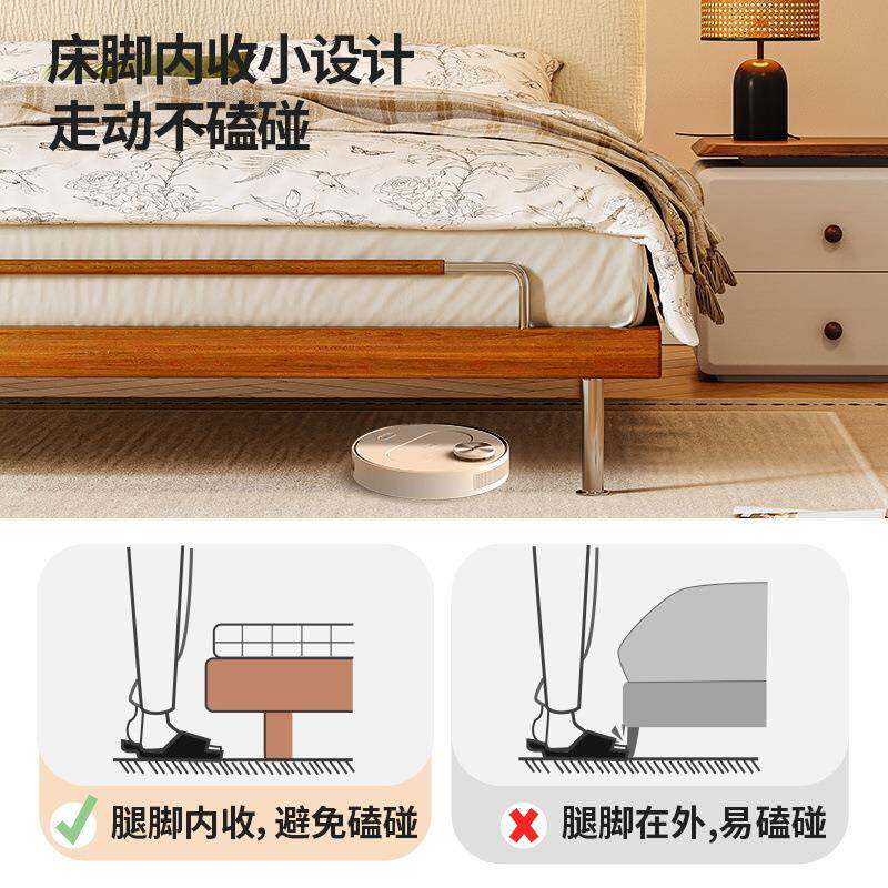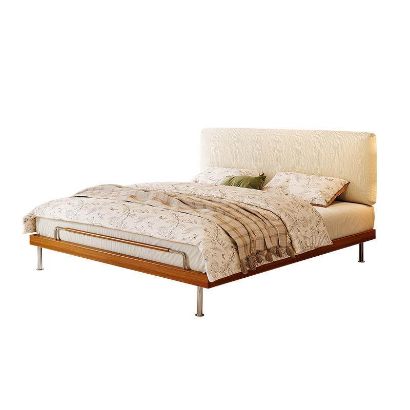 桐语特 复古中古风超薄床头可调节实木床雪尼尔布艺双人主卧大床