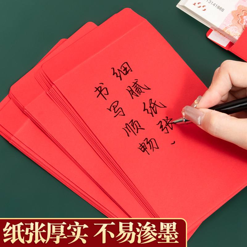 自带背胶红色空白信封袋手写结婚订婚拜年新年喜庆红包袋大号加厚硬质信封纸袋大红色自粘装现金贺卡请帖证书