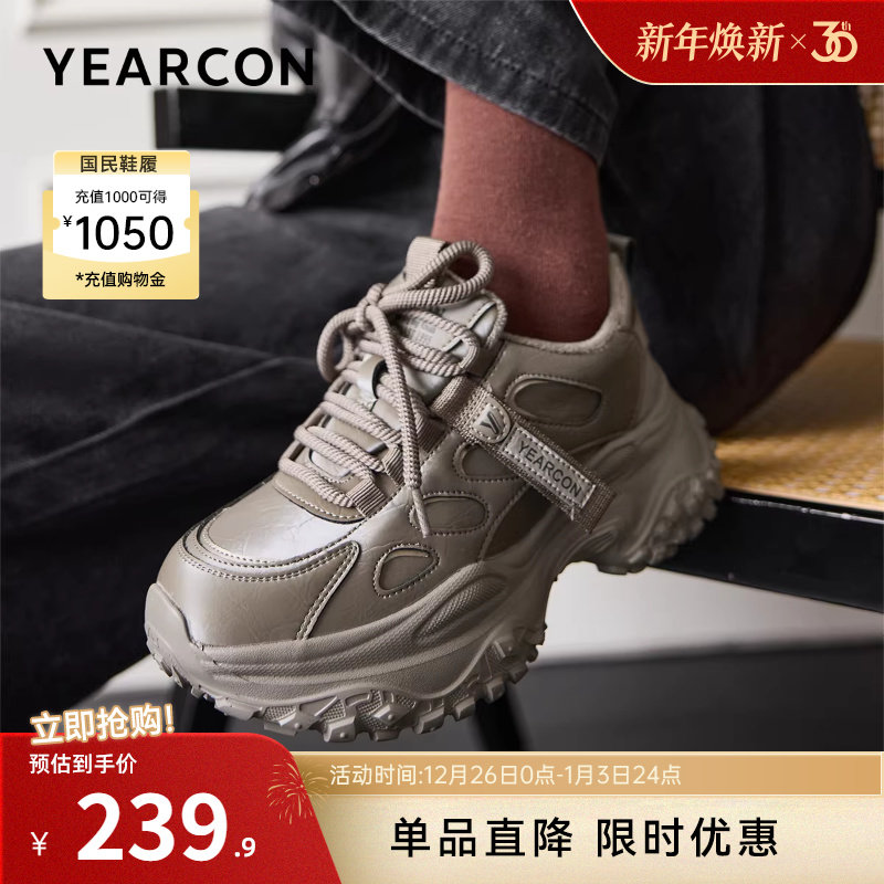 意尔康女鞋2025冬季新款加绒保暖二棉鞋老爹鞋户外休闲厚底小个子