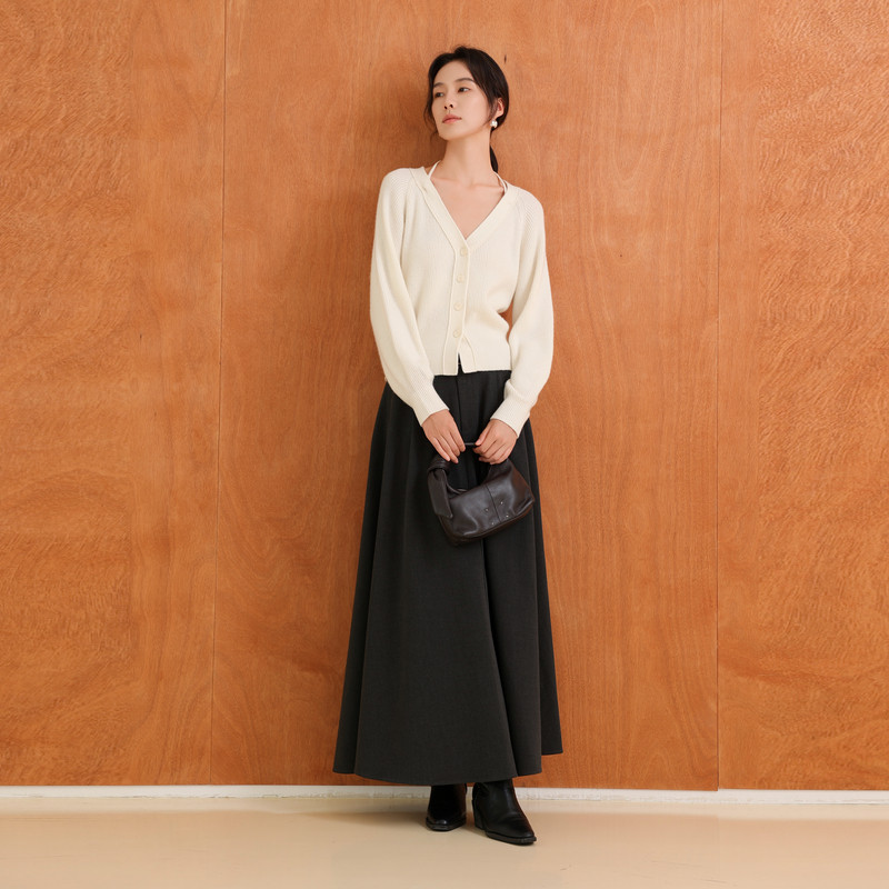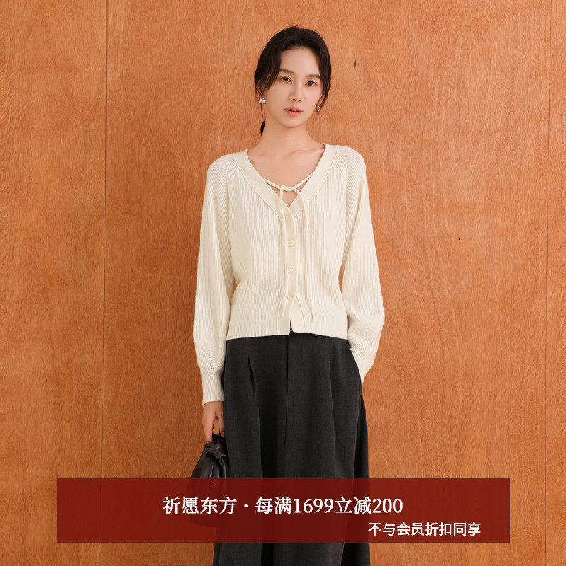 AIRIQI商场同款25秋新款修身挂脖系带V领羊毛针织开衫女AH53KS106
