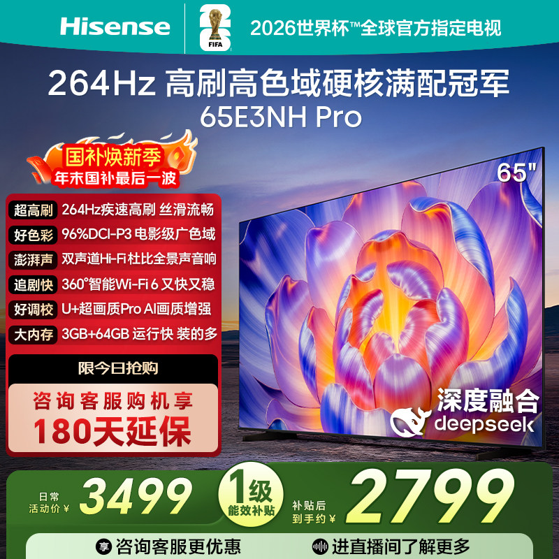 海信电视65E3NH Pro 65英寸 U+超画质引擎 264Hz 以旧换新电视机