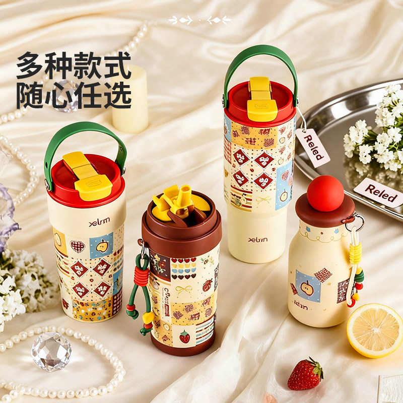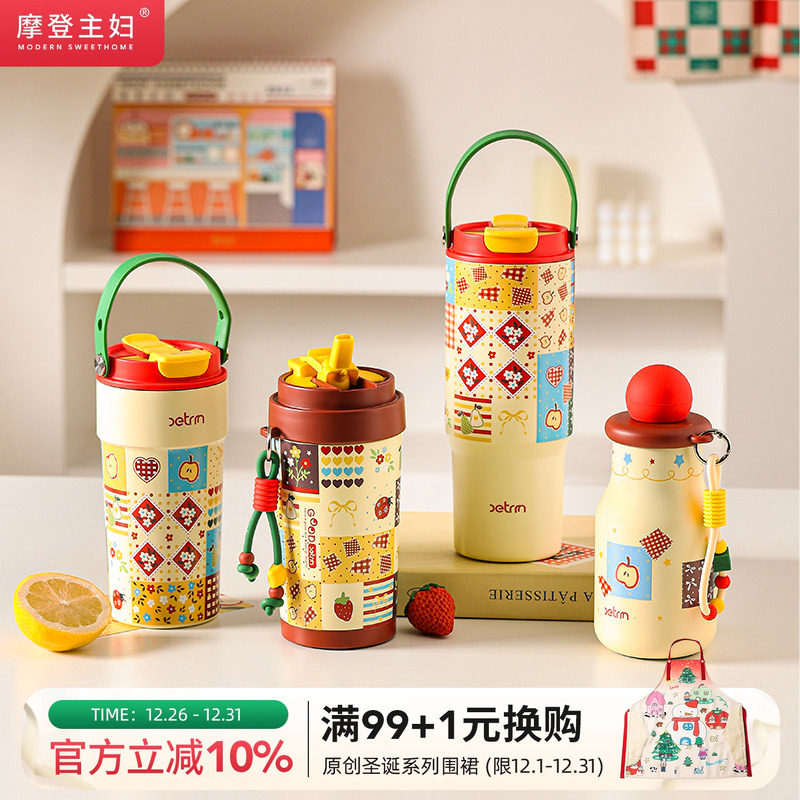 摩登主妇保温杯女生不锈钢杯子高颜值2025新款吸管水杯便携咖啡杯
