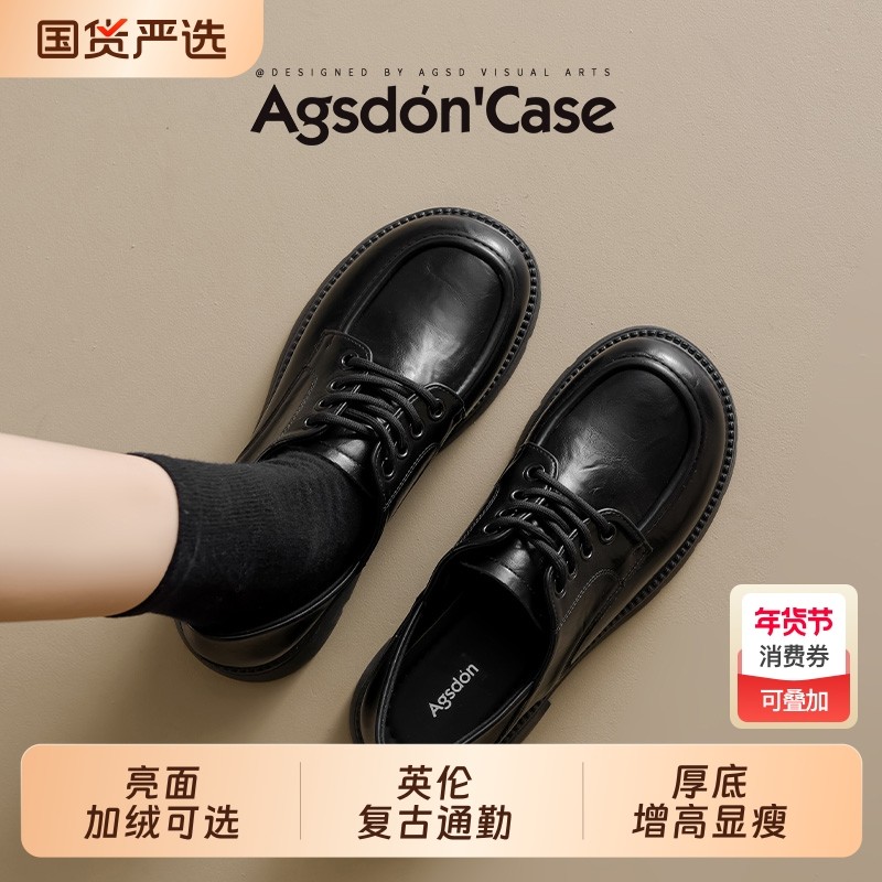 奥古狮登黑色乐福鞋女2026新款春季厚底英伦风通勤加绒小皮鞋亮面