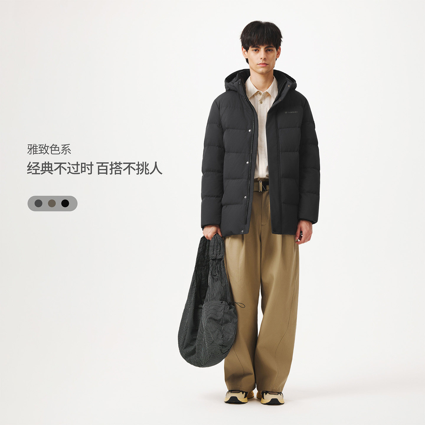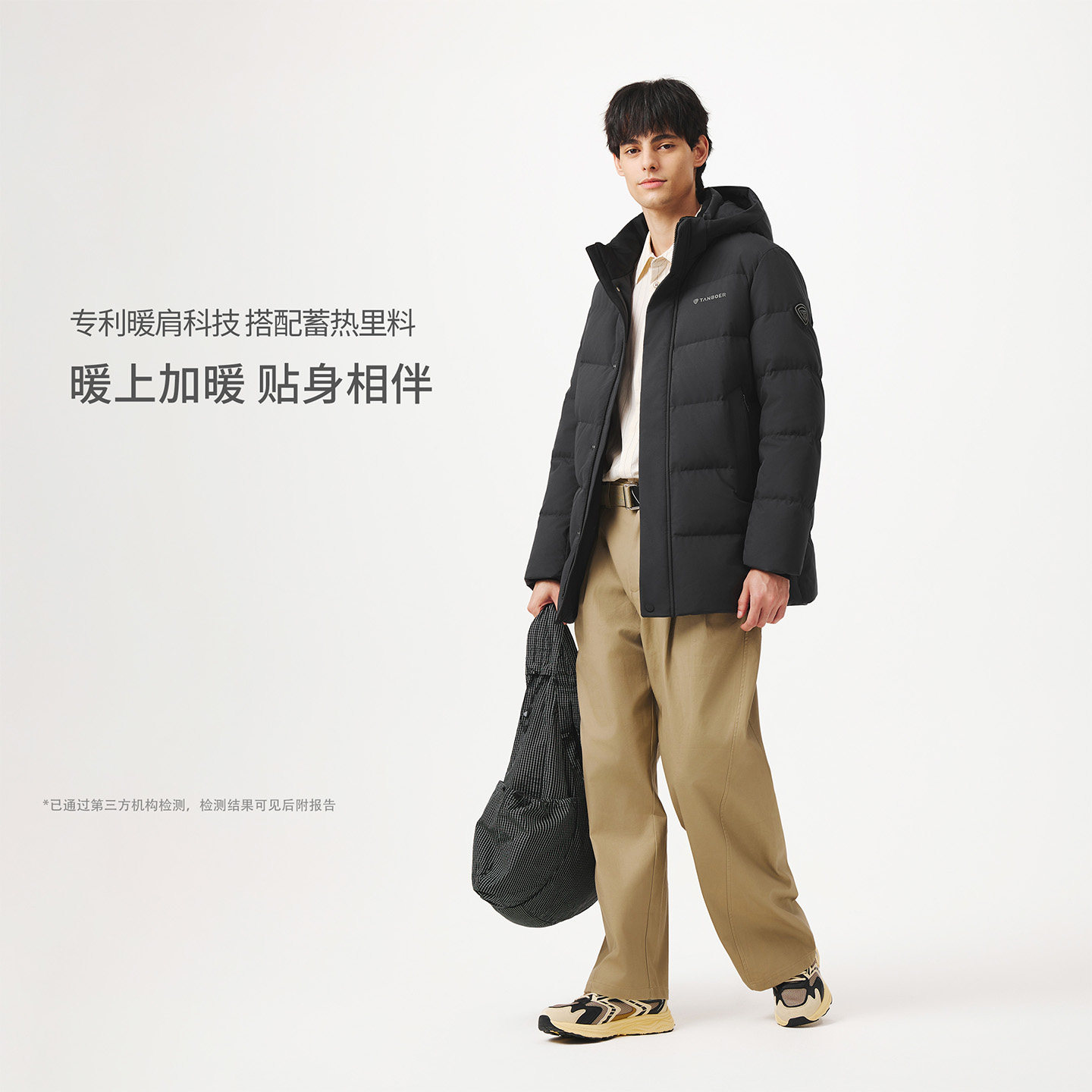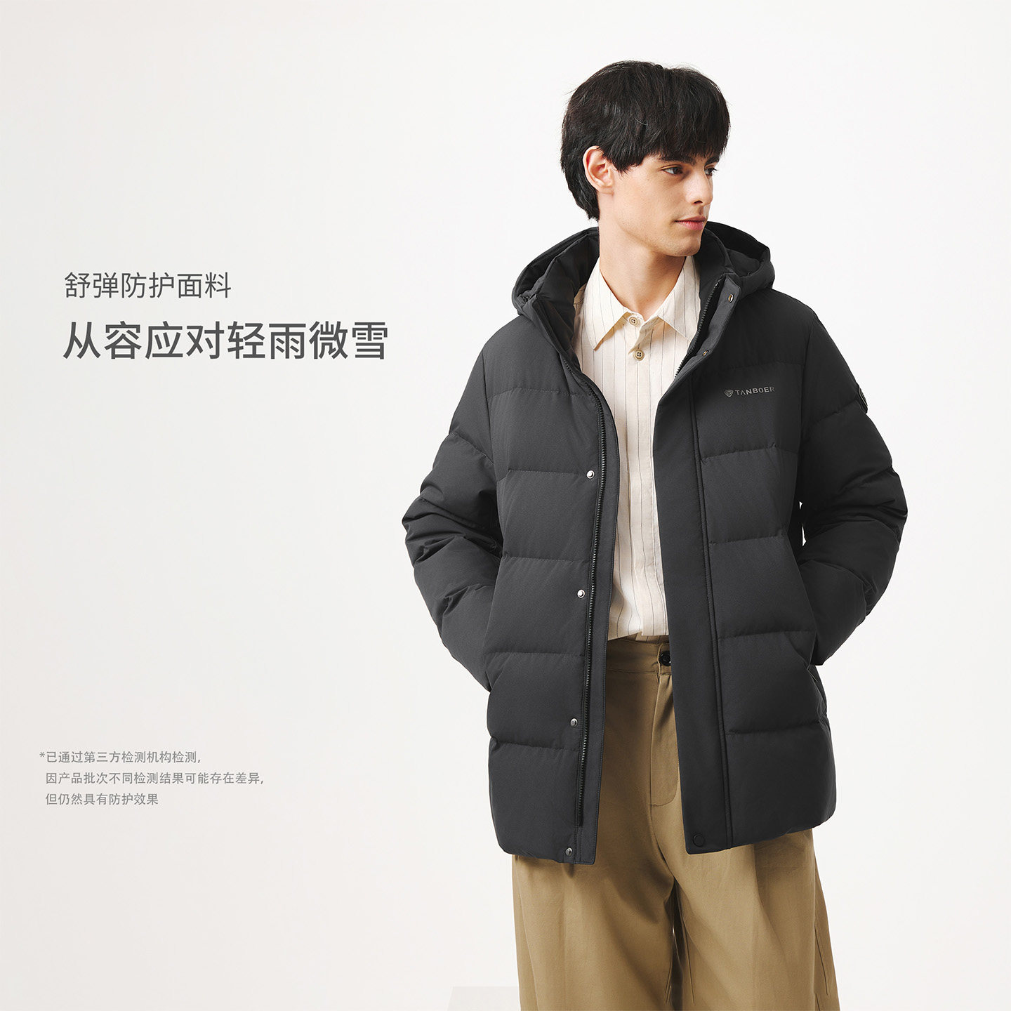 坦博尔25冬季新款连帽羽绒服 中长款男士加厚保暖 商务高品质外套