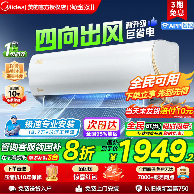 美的酷金空调挂机大1.5匹冷暖1级变频一匹冷暖壁挂家用官方旗舰