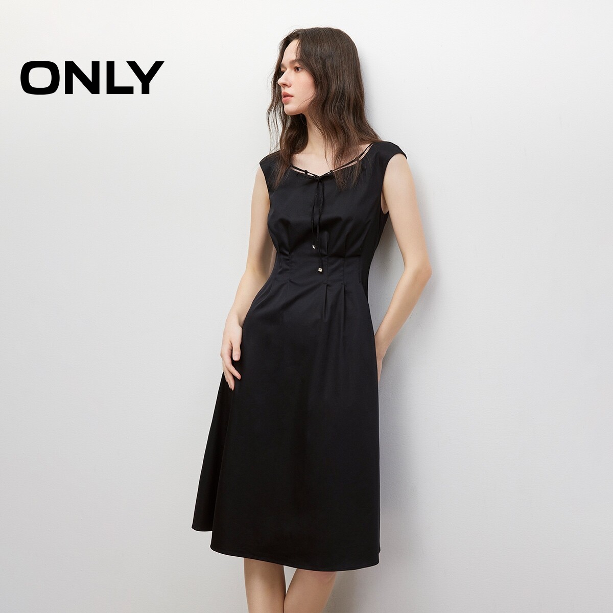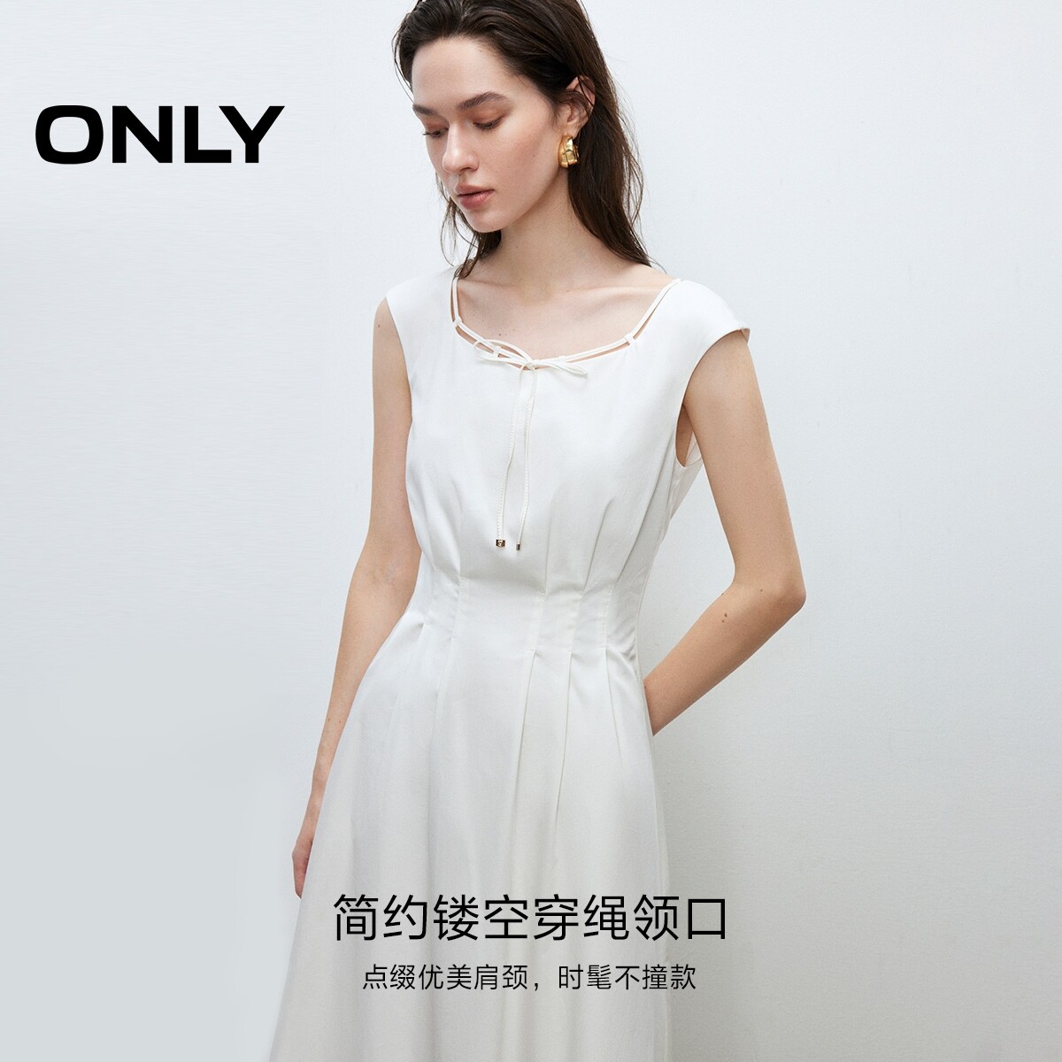 【ONLY奥莱】春季新款通勤气质无袖系带镂空圆领收腰显瘦连衣裙女