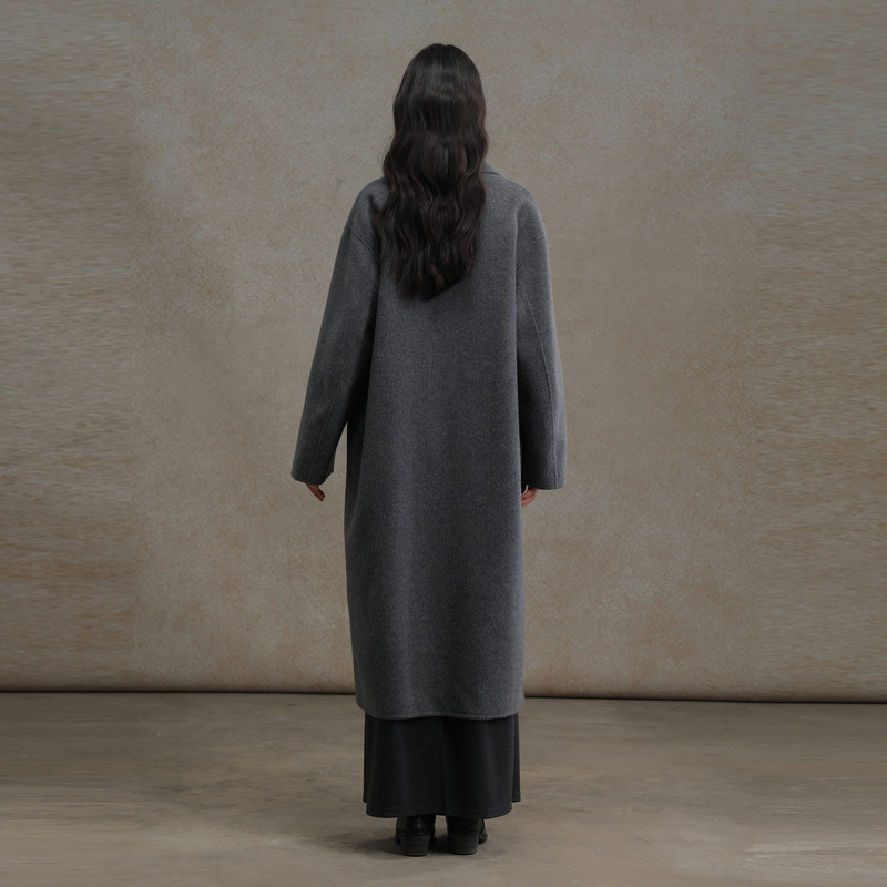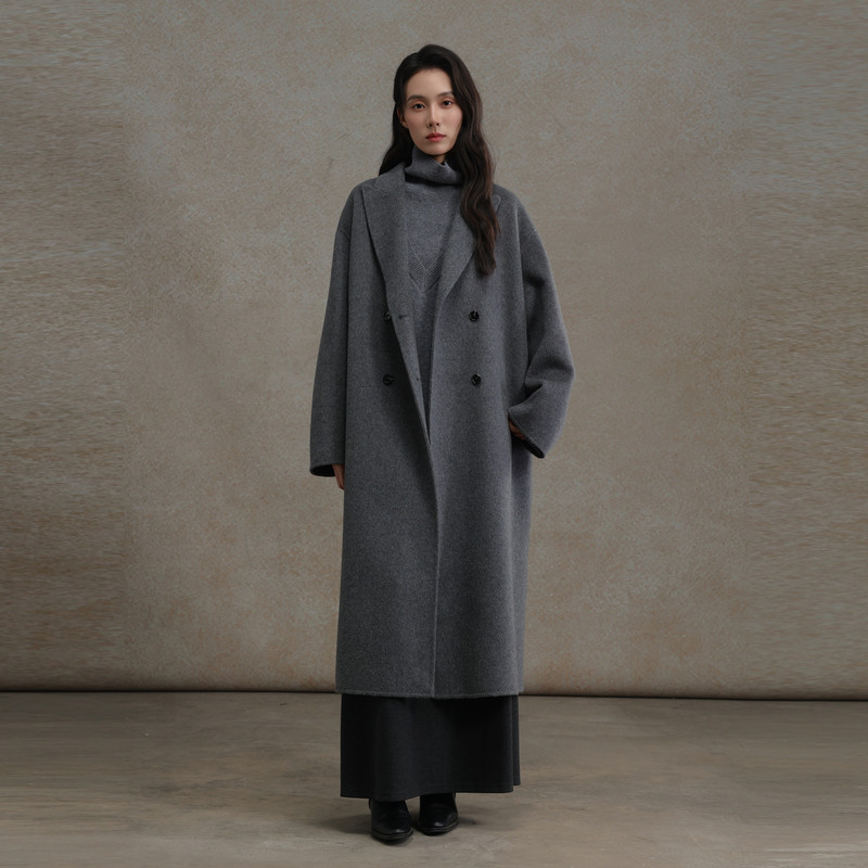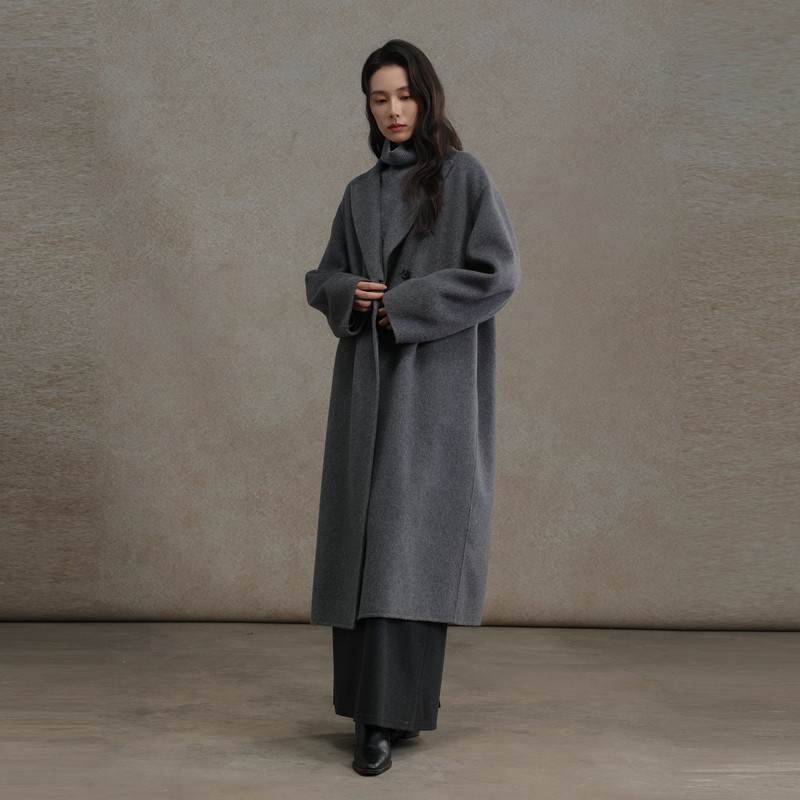 RUISHI芮时重磅驼绒桑蚕丝羊毛慵懒两穿领灰色毛呢大衣秋冬外套女