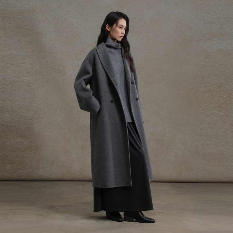 【孤品捡漏】反季清仓双面羊毛大衣女长款纯手工缝制高端毛呢外套