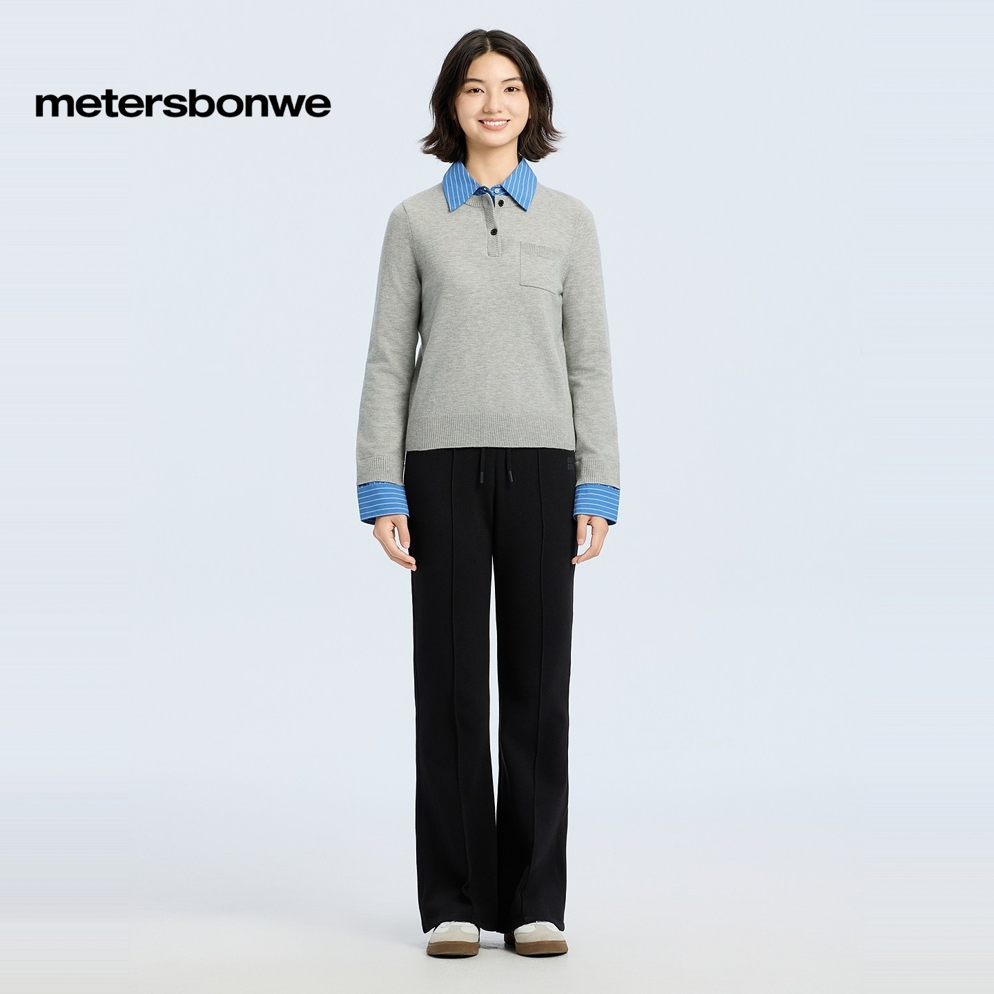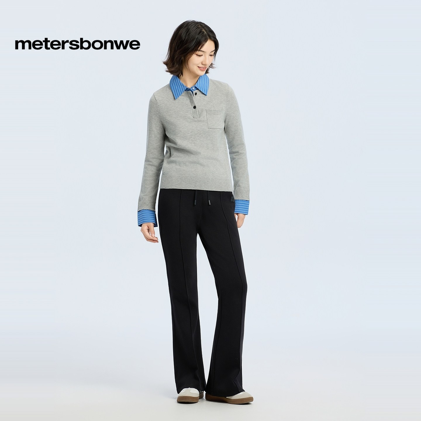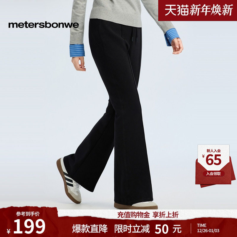 [商场同款]美特斯邦威女2025秋冬新款直筒西装针织喇叭裤抽绳长裤