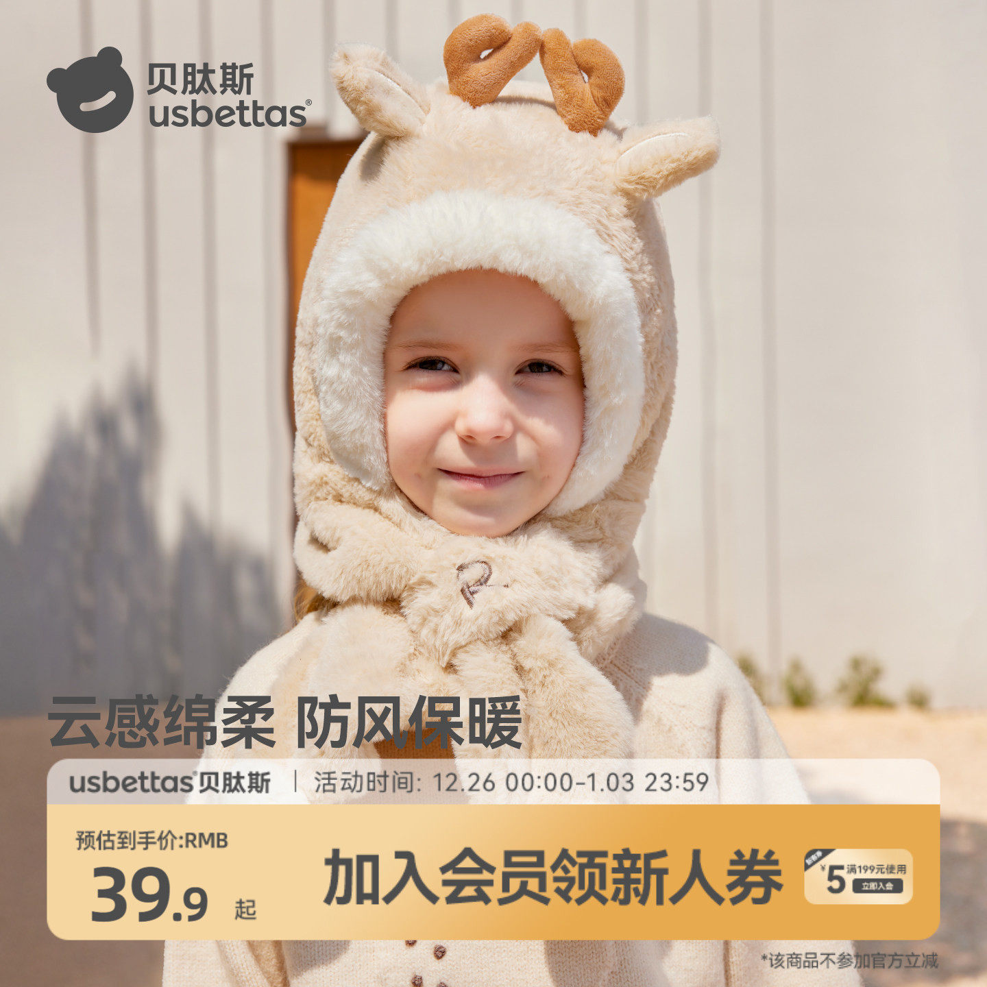 尼多熊儿童帽子围巾一体冬季防风帽宝宝毛绒护耳帽女童加厚保暖帽