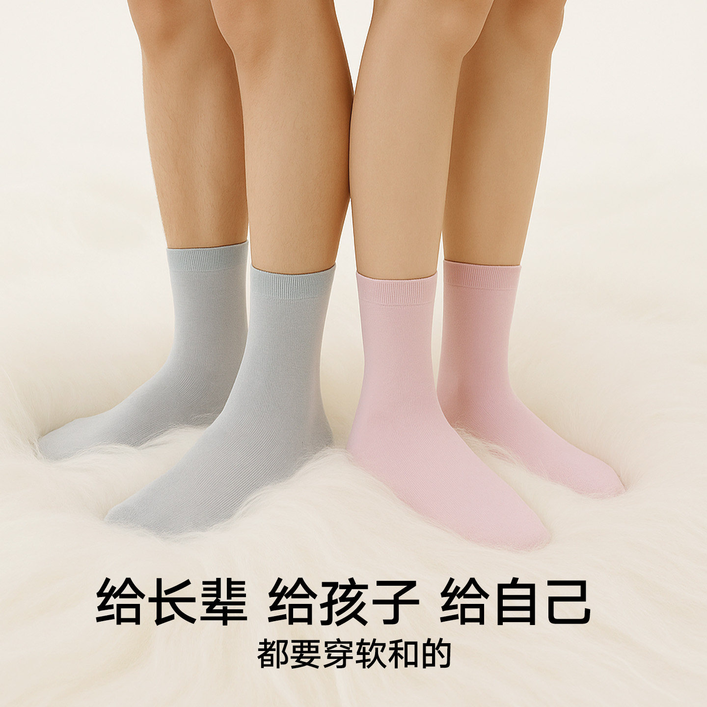 棉伙棉伴纯棉中筒袜抗起球男女纯色透气舒适耐穿日常百搭