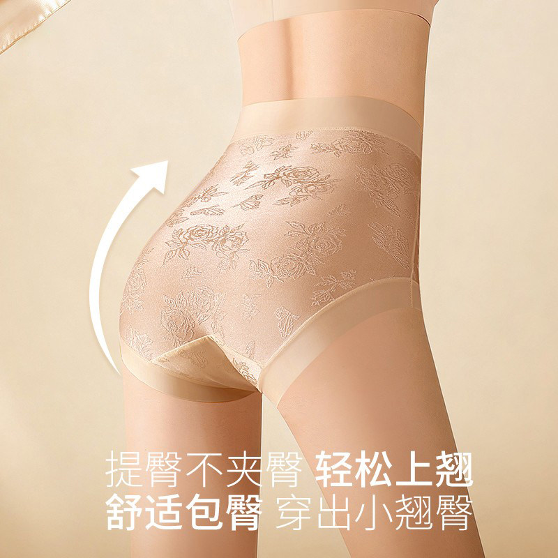 焕丽女王新中式浮雕绣花高腰桑蚕丝底裆全包臀三角女士无痕内裤女