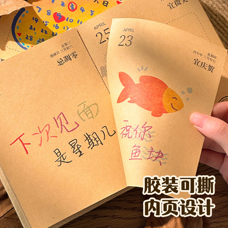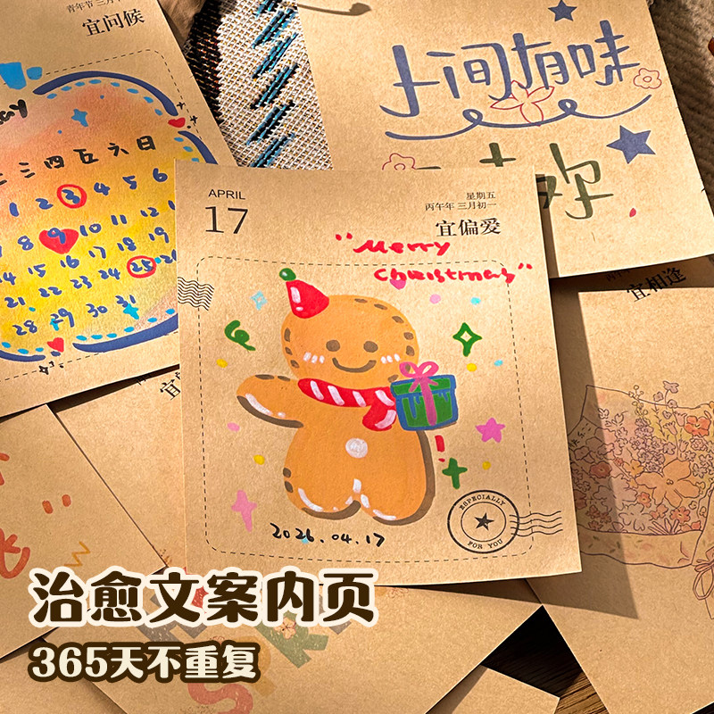 三年二班 日历2026年新款高颜值尼泊尔手工本日历可自由DIY内页台历办公室桌面摆件diy圣诞礼物送材料包