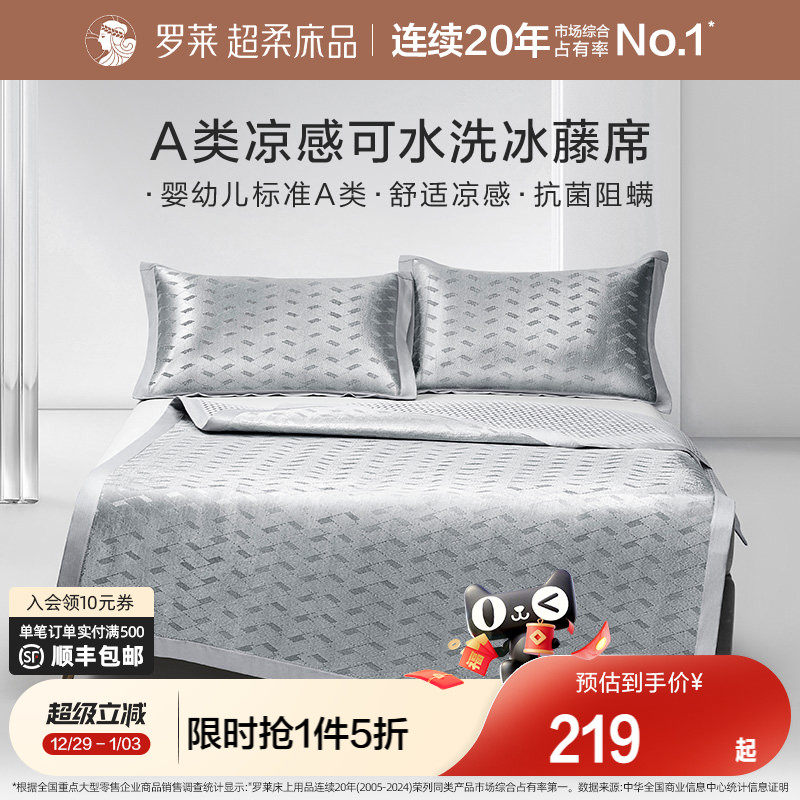 罗莱家纺凉席夏季夏凉冰丝凉席子两 三件套免水洗600D凉感冰藤席