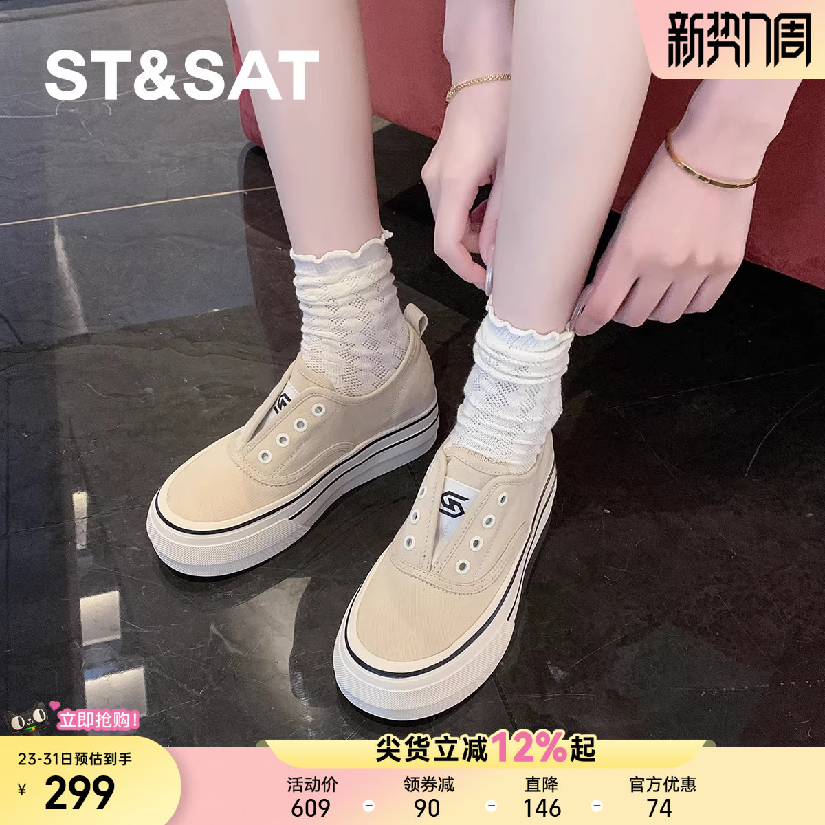 星期六内增高厚底帆布鞋女2025新款百搭休闲板鞋一脚蹬懒人小白鞋