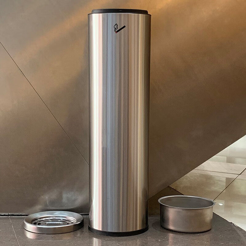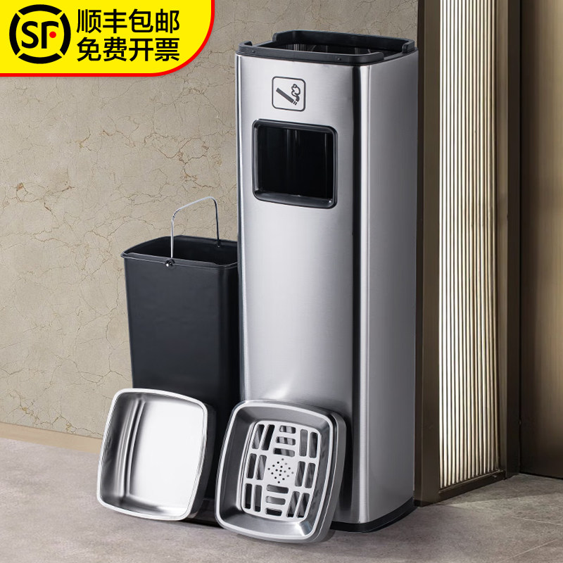 酒店大堂不锈钢吸烟区电梯口灭烟垃圾桶带烟灰缸立式柱分类办公室
